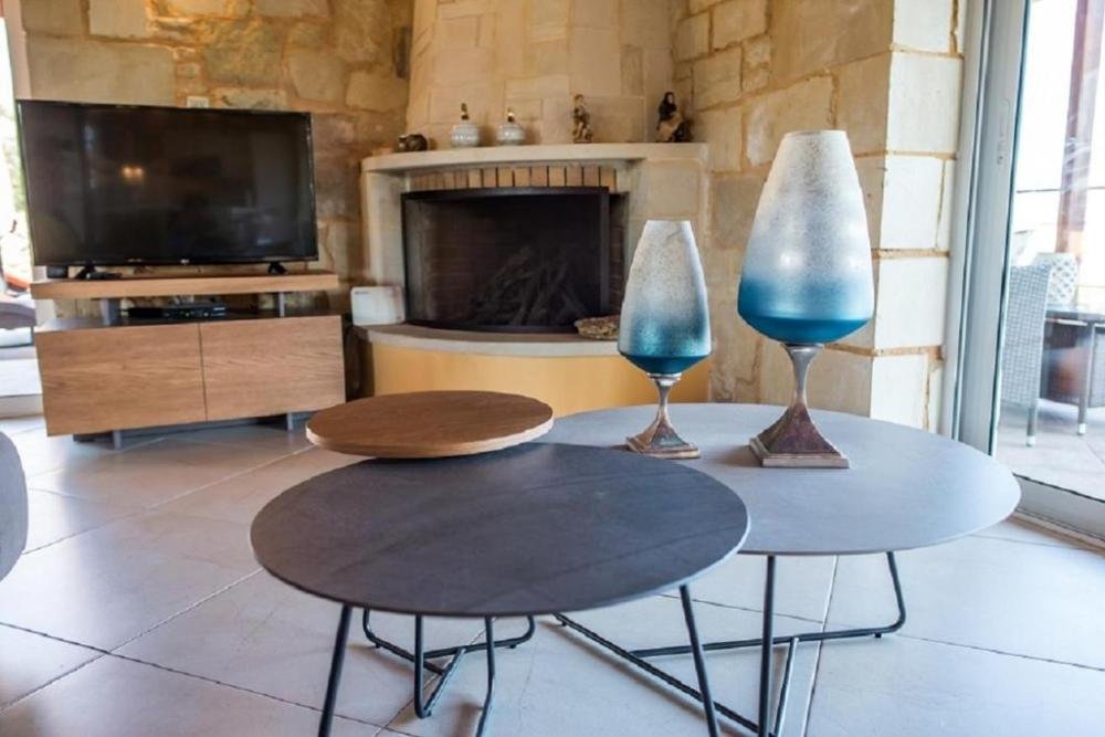 Draußen erwarten Sie ein privater Pool, angelegte Gärten mit Olivenbäumen und eine großzügige Terrasse mit herrlichem Blick auf den Sonnenuntergang. Zur Ausstattung gehören Klimaanlage, Solarwarmwasserbereitung, Doppelverglasung, Alarmanlage und ein privater Parkplatz.