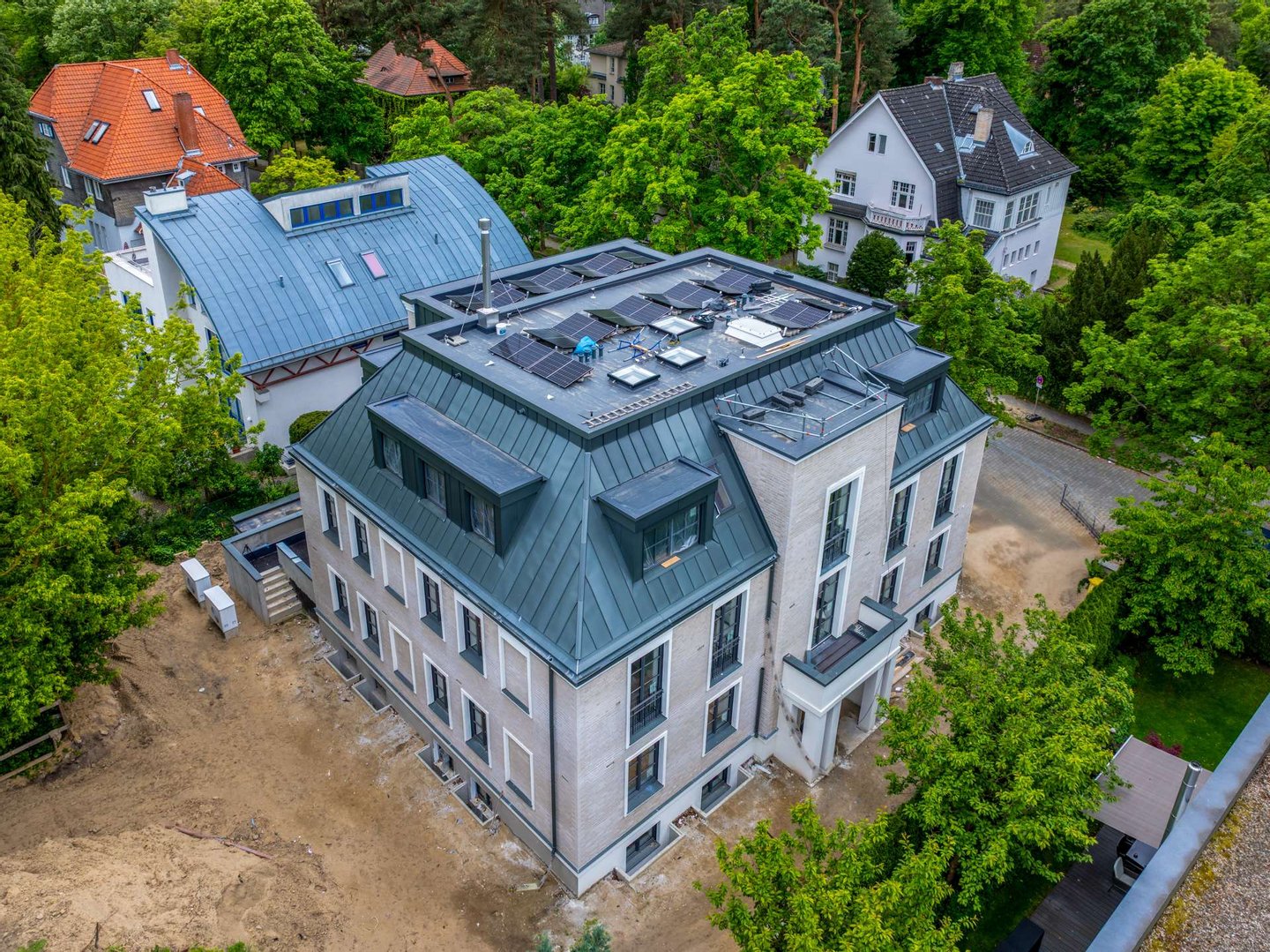 Zehlendorf zählt zu den beliebtesten Wohnlagen Berlins und bietet eine besonders attraktive Umgebung. Die exklusive Neubau-Stadtvilla befindet sich in einer ruhigen Anliegerstraße, was für eine angenehme und entspannte Atmosphäre sorgt. Die