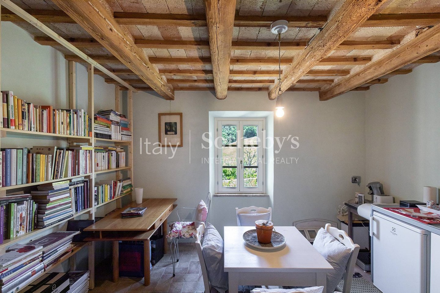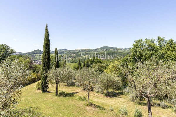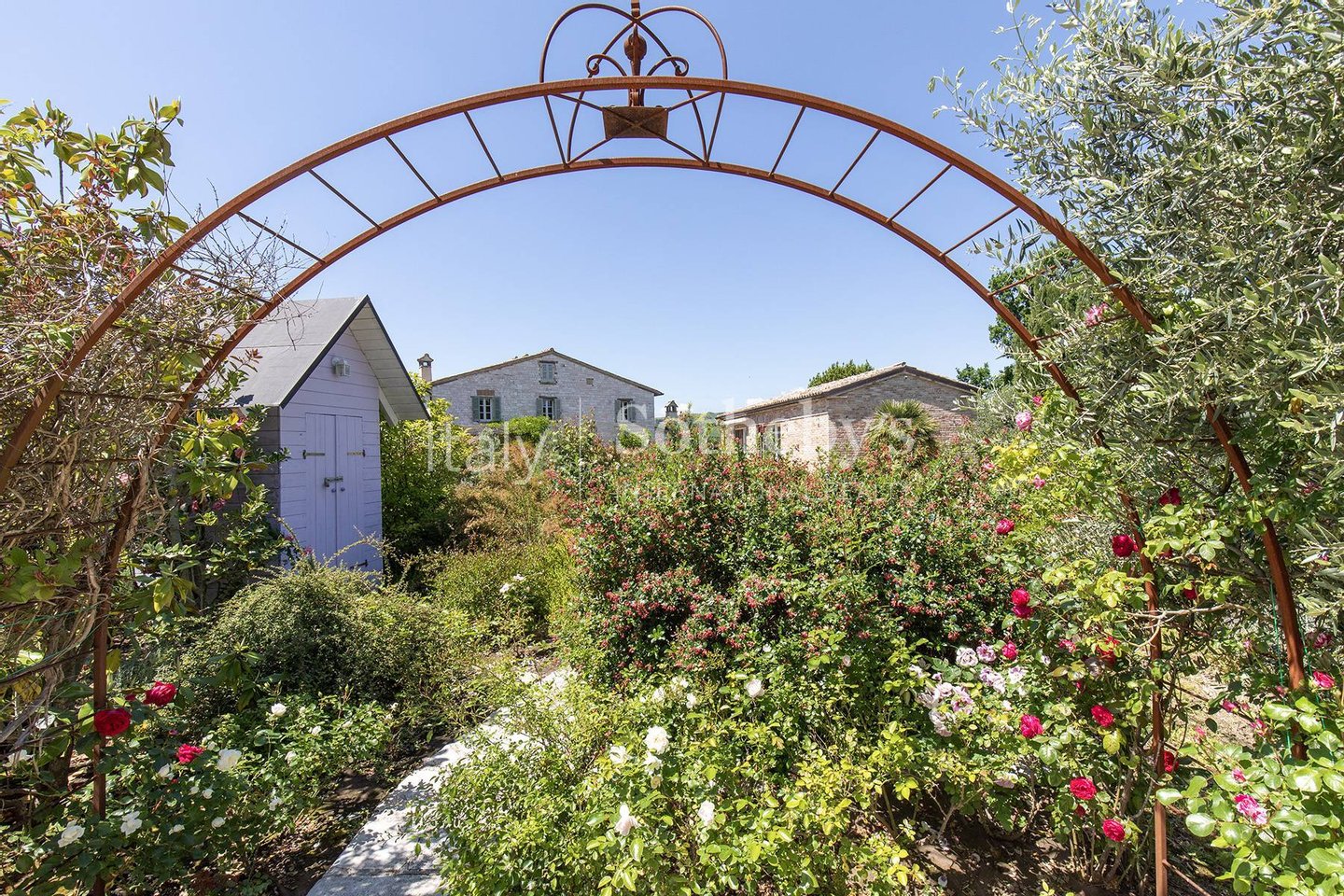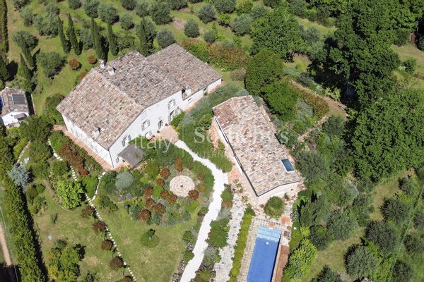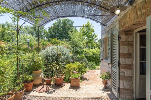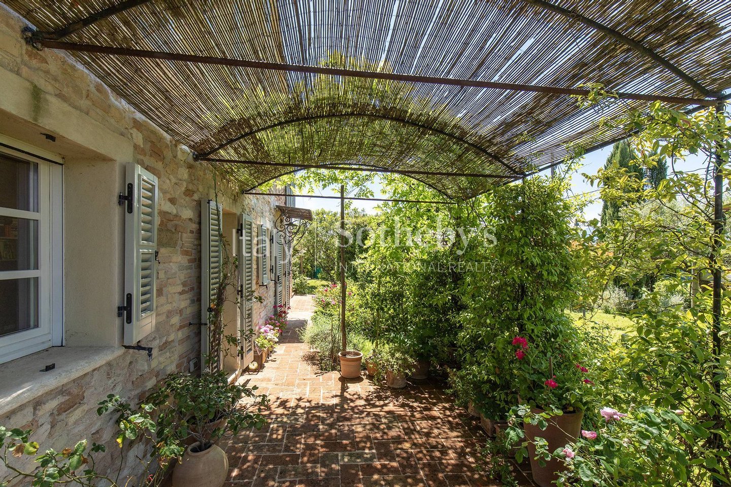Dieses bezaubernde Natursteinhaus in der Nähe von Pergola (PU) vereint zeitlosen Charme mit der Raffinesse einer liebevoll bis ins Detail restaurierten Immobilie. Einst Residenz lokaler Großgrundbesitzer, reicht der älteste Teil des Anwesens über 400 Jahre zurück. Auf einem Hügel in 300 m Höhe gelegen, bietet das Anwesen absolute Privatsphäre und erstreckt sich über 7 Hektar mit Ackerland, Wäldern, Gärten und einem Olivenhain mit über 200 Bäumen, darunter jahrhundertealte Exemplare.