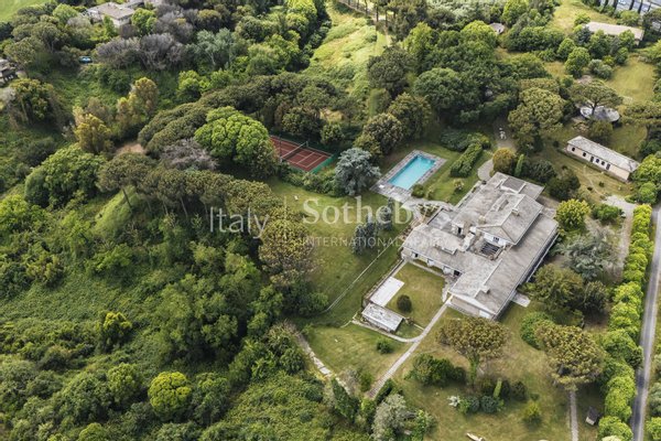 Im Außenbereich befinden sich ein weitläufiger Park mit jahrhundertealten Bäumen, ein 20 Meter langer Swimmingpool, ein Tennisplatz und ein Kleinfeldfußballplatz. Die Lage ist strategisch - direkt am G.R.A. (Autobahnring) und gut mit dem Stadtzentrum verbunden.