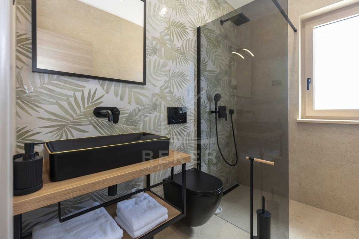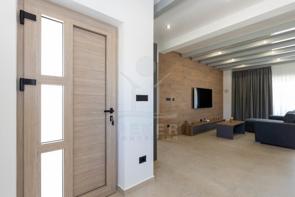 Dieses moderne Haus liegt am grünen Dorfrand von Labin. Ruhig, freundlich, naturnah. Der Garten grenzt direkt an eine bewaldete Fläche. Ideal, wenn Sie Ruhe suchen oder Platz zum Spielen für Kinder brauchen. Einkaufsmöglichkeiten, Schule und Supermarkt erreichen Sie schnell – und das Meer ist keine 10 Minuten mit dem Auto entfernt.