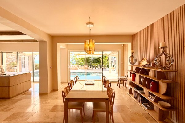 Selten zu verkaufen! Entdecken Sie dieses prächtige Anwesen aus Stein, das im Jahr 2024 mit hochwertigen Materialien komplett renoviert wurde. Es bietet Meerblick und verbindet authentischen Charme und moderne Elemente perfekt. Vom Eingang an wird der Ton gesetzt: schöne Volumina, natürliches Licht, warme Atmosphäre. Die moderne Küche mit Spülküche öffnet sich zu einem großen Doppelwohnzimmer mit Sitzecke und Kamin, ideal für Unterhaltung in einer freundlichen Atmosphäre. Im Obergeschoss bietet Ihnen die Master-Suite mit privater Terrasse einen Kokon der Privatsphäre mit Blick auf das Mittelmeer. Auf der Gartenebene begrüßen zwei Schlafzimmer mit eigenem Bad Familie oder Gäste in absolutem Komfort. Draußen geht die Magie weiter: ein wunderschöner Salzwasserpool, der sich auf der gleichen Ebene wie die Wohnräume befindet, ein voll ausgestattetes Poolhaus und eine Außendusche, um die sonnigen Tage zu verlängern. Alles in einer grünen, ruhigen und geschützten Umgebung. Eine einzigartige Adresse, zwischen dem Meer und den Hügeln, perfekt als Hauptwohnsitz, Zweitwohnsitz oder prestigeträchtige Investition. Eine außergewöhnliche Immobilie, die es ohne Verzögerung zu entdecken gilt.