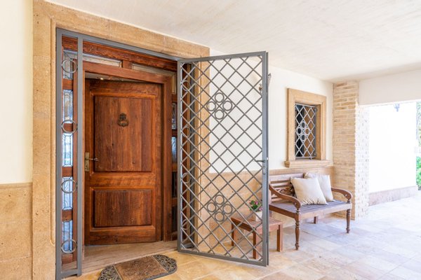 Das Haus, das 1975 erbaut und 2005 sorgfältig renoviert wurde, bewahrt die Essenz der valencianischen Architektur – grobe Steine, massive Holzträger und handgefertigte MarmorDekorationen – und integriert gleichzeitig eine zentrale Klimaanlage, ein Alarmsystem mit Kameras und einen Dieselgenerator für absoluten Komfort. Die Innenräume verteilen sich auf vier Hauptschlafzimmer und ein fünftes Gästezimmer, ergänzt durch einen Ankleideraum und fünf Bäder. Zwei Wohnzimmer mit NatursteinKamin, ein helles Esszimmer und zwei ausgestattete Küchen bilden einen Lebensbereich, der sowohl für den Alltag als auch für Familientreffen gedacht ist.