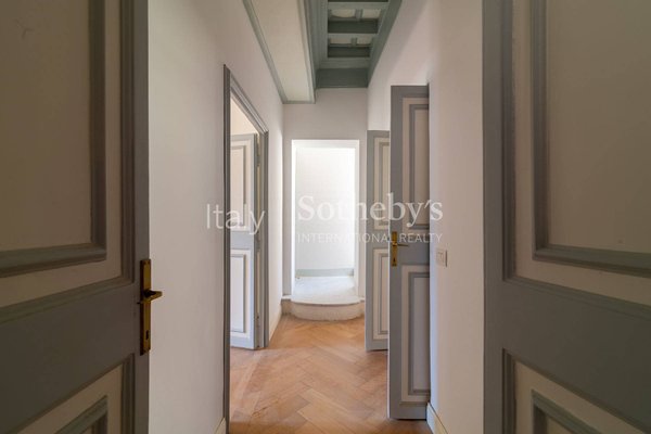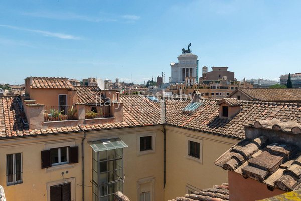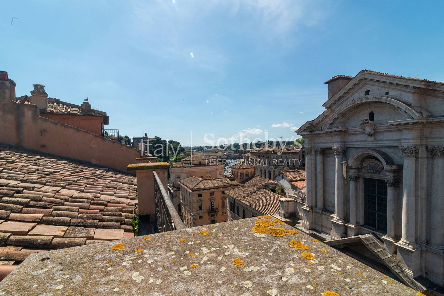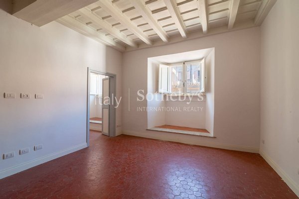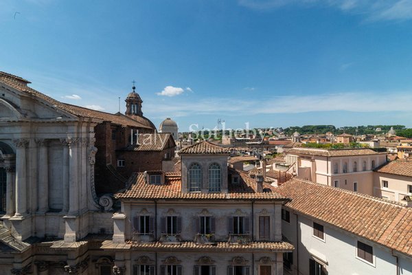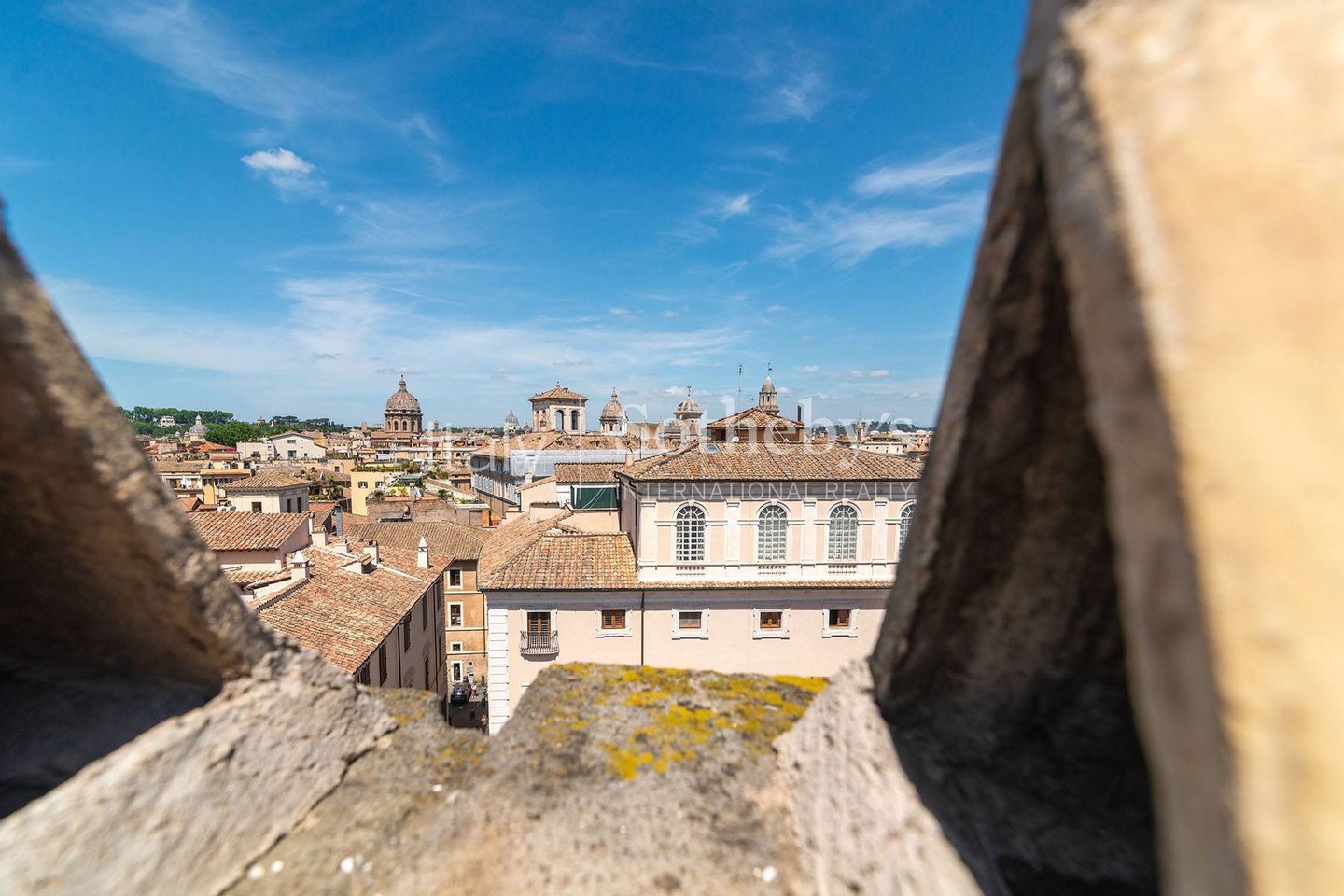 Einzigartig in ihrer Art, erstreckt sich die Immobilie rund um einen stimmungsvollen Innenhof und genießt Ausblicke auf alle Seiten des imposanten Palastes. Die großzügigen und lichtdurchfluteten Räume werden durch sichtbare Holzbalkendecken veredelt, die eine warme und elegante Atmosphäre schaffen. Einige Zimmer öffnen sich zu reizvollen privaten Terrassen - perfekte Orte für entspannte Momente. Eine eindrucksvolle Wendeltreppe aus dem 17. Jahrhundert führt schließlich zu einer spektakulären Dachterrasse von über 100 m² - ein wahres Juwel über den Dächern Roms mit atemberaubendem Blick auf Kuppeln und historische Monumente.