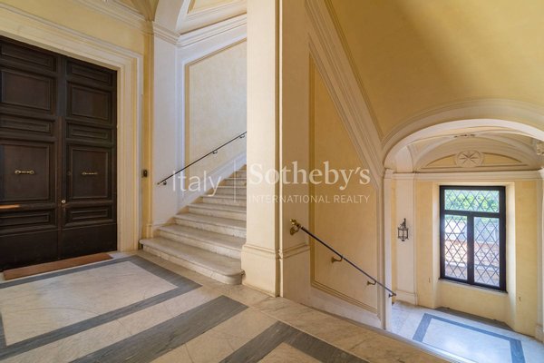 In einem der begehrtesten Viertel Roms, nur wenige Schritte vom Kapitol und der Piazza Venezia entfernt, befindet sich eine exklusive Wohnung von seltener Schönheit, die das gesamte zweite Stockwerk des historischen Palazzo Abertoni Spinola einnimmt.