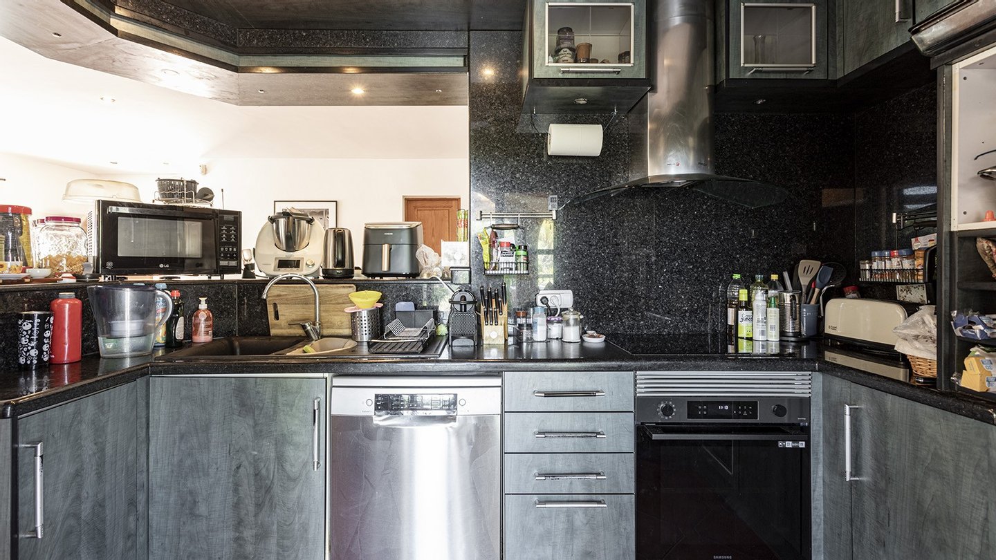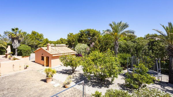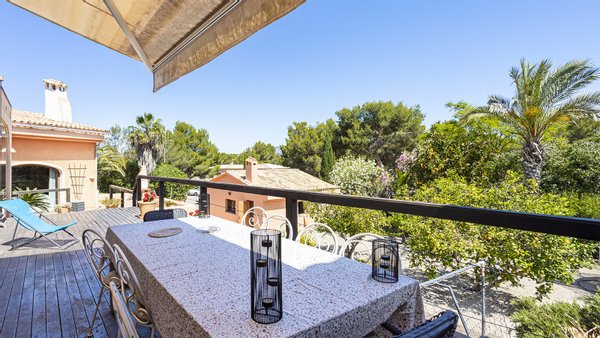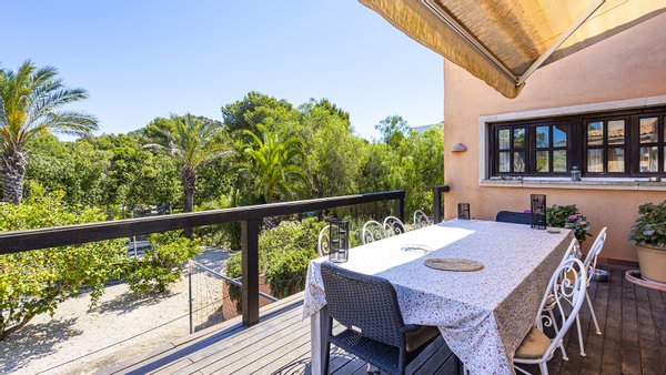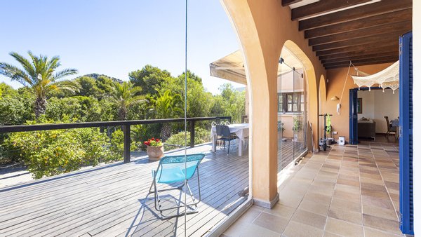 Mit insgesamt 4 lichtdurchfluteten Schlafzimmern und 4 Badezimmern, davon 3 en-suite, bietet diese Immobilie nicht nur ausreichend Raum für Ihre Familie und Gäste, sondern auch erstklassige Lebensqualität. Besonders hervorzuheben ist das ca. 58 m2 große Gästehaus, das mit eigenem Zugang, Bad und Wohnzimmer ausgestattet ist und somit den Besuchern einen äußerst angenehmen Aufenthalt ermöglicht. Um das ganze Jahr über eine angenehme Raumtemperatur zu gewährleisten, stehen eine Klimaanlage (w/k), eine Gaszentralheizung und ein offener Holzkamin bereit, der zudem als elegantes Designelement dient. Stauraum ist dank mehreren Abstellräumen und großer Einbauschränke in den Räumlichkeiten reichlich vorhanden. Des Weiteren steht Ihnen ein Arbeitszimmer zur Nutzung bereit, in dem Sie ungestört arbeiten können. Komplementiert wird das Inserat durch einen ebenso attraktiven Außenbereich, bestehend aus einem großzügigen Garten, einem ca. 40 m2 großen Süßwasserpool mit BBQ-Bereich und einer Chillout-Lounge. Auch Parkmöglichkeiten sind selbstverständlich vorhanden. Zur Unterbringung Ihrer Fahrzeuge stehen Ihnen eine Garage sowie Carportstellplätze zur Verfügung. Obwohl die Immobilie an einer der Hauptstraßen von Nova Santa Ponsa liegt, garantiert ihre intelligente Lage und vor allem die Ausrichtung der Terrasse auf das Grün und den Wald den Bewohnern Ruhe, Frieden und Erholung.