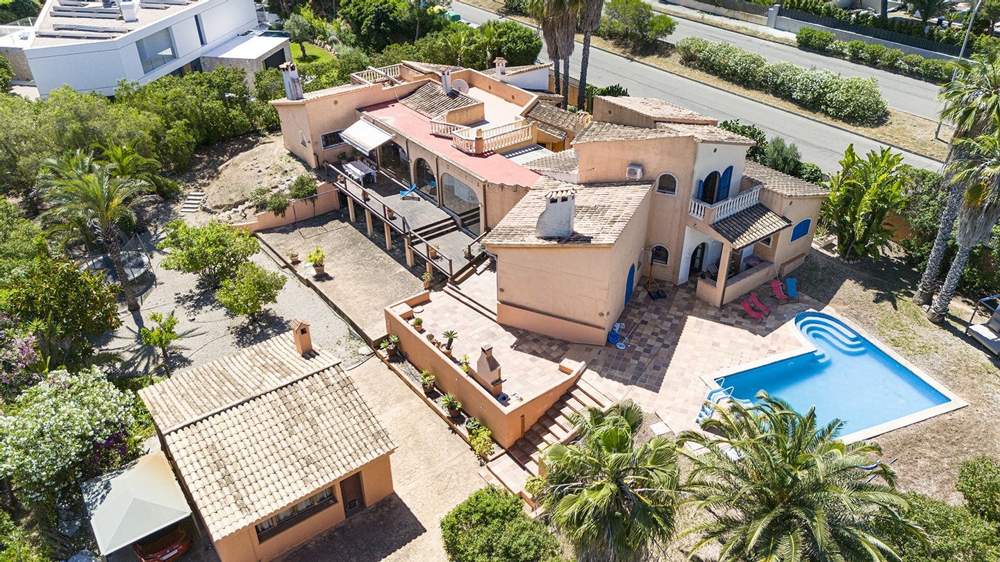 Willkommen in Ihrem neuen Zuhause! Wir freuen uns, Ihnen diese entzückende Villa präsentieren zu können, gelegen in Nova Santa Ponsa. Die im Jahr 2000 erbaute Immobilie im mediterranen Stil mit viel Potenzial erstreckt sich über sehr großzügiges Grundstück von ca. 2047 m2, wovon die bebaute Fläche 416 m2 und die reine Wohnfläche ca. 300 m2 beträgt. Die bebaute Fläche verteilt sich auf zwei Etagen und zwei Häuser, die durch einen Korridor verbunden sind.