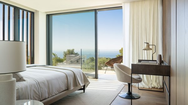 Auf einem erhöhten Grundstück gelegen, bietet dieses architektonische Juwel von fast jedem Winkel des Hauses einen Panoramablick auf das Meer.