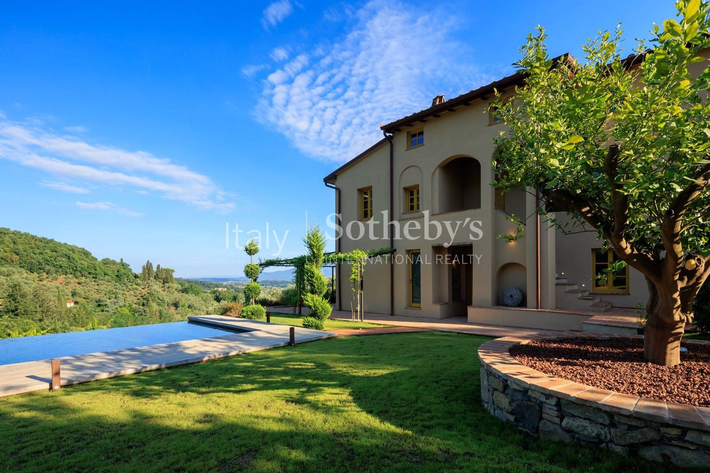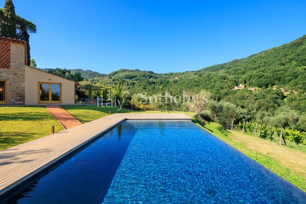 Bezaubernde Residenz, ein verborgenes Juwel unter den renommierten Hügeln von Lucca, umgeben von Olivenhainen und Weinbergen, die eine zeitlose Landschaft zeichnen.