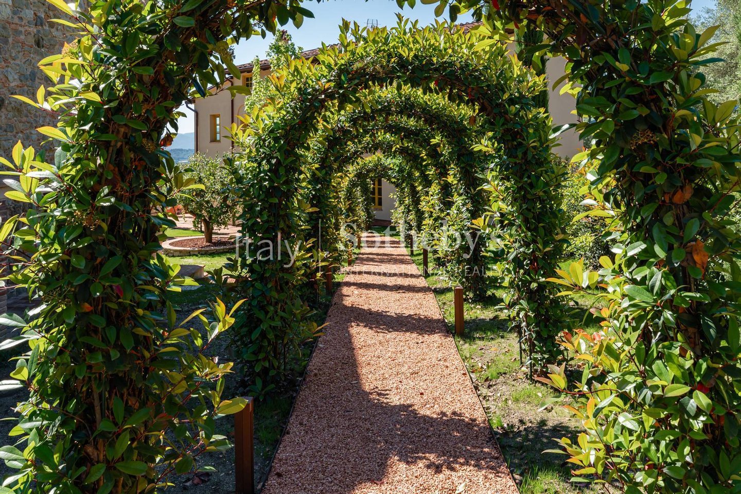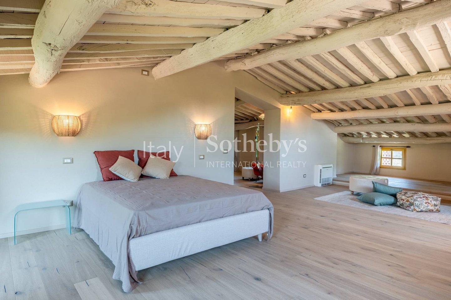 Bezaubernde Residenz, ein verborgenes Juwel unter den renommierten Hügeln von Lucca, umgeben von Olivenhainen und Weinbergen, die eine zeitlose Landschaft zeichnen. Mit einer Fläche von etwa 2,5 Hektar zeichnet sich dieses Anwesen durch seine Größe aus und empfängt Besucher in einer Atmosphäre raffinierter Eleganz.