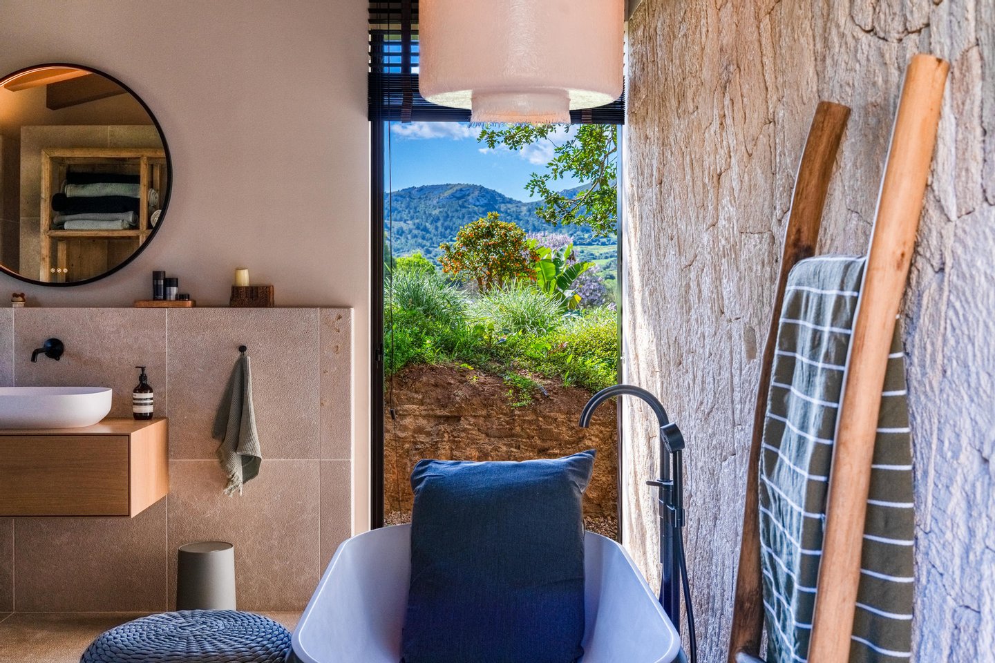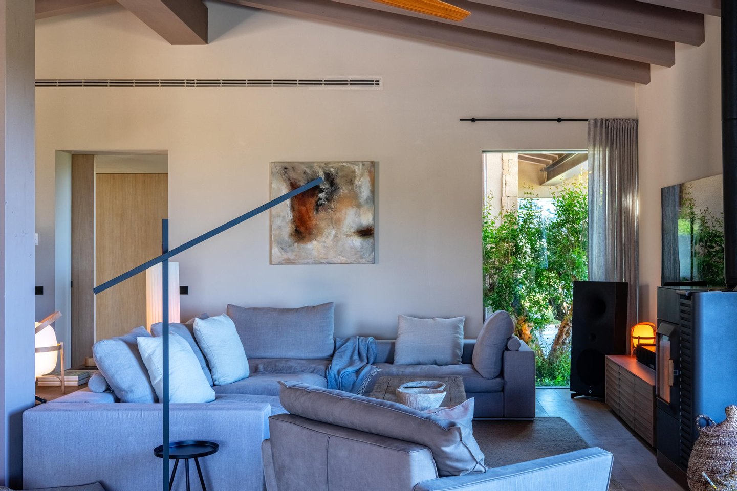 Komorebi liegt am höchsten Punkt des Grundstücks – mit atemberaubender Sicht über die schönen alten Bäume hinweg - Randa bis Alcudia und der Serra de Tramuntana im Hintergrund. Kein Strommast, keine Straße – nur Vogelstimmen und das Rauschen der Blätter. Die grosse Fenster vereinen im Sommer - geöffnet das Innere und Äussere des Hauses zu einem Ganzen, während sie im Winter zu einer gemütlichen Meditation des Wolkenspiels einladen. Absolute Privatsphäre – eingefasst von einer historischen Natursteinmauer, mit Weinbau in der Nachbarschaft in einem der grünsten und schönsten Teile der Insel.