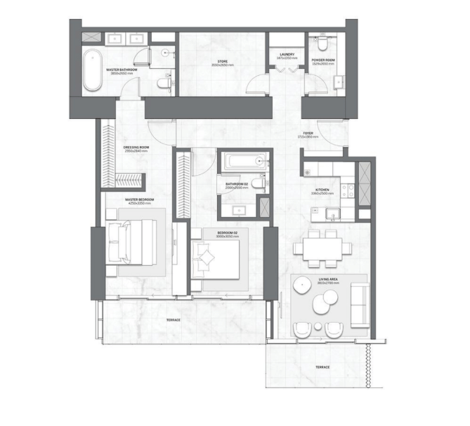 Die Wohnung verfügt über zwei geräumige Schlafzimmer, die ausreichend Platz für die ganze Familie bieten. Der offene Wohn- und Essbereich lädt zum Entspannen und Zusammensein ein. Die modern ausgestattete Küche mit hochwertigen Geräten lässt keine Wünsche offen.