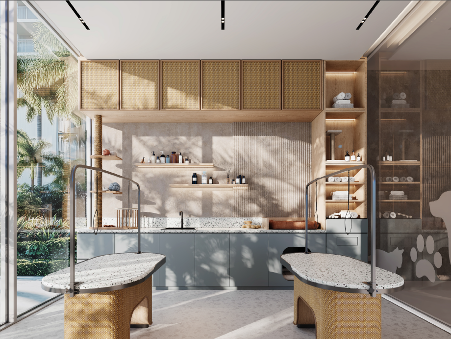 Auf der Podiumsebene stehen den Bewohnern zahlreiche Annehmlichkeiten zur Verfügung, darunter ein Coworking-Space, eine Gemeinschaftsküche, ein Spielzimmer für Kinder, ein Dampfbad und eine Sauna. Ein Sportclub und ein Wassersportzentrum bieten vielfältige Möglichkeiten für Aktivitäten. Ebenso gibt es auf Coral Drive eine exklusive Einkaufsstraße mit Boutiquen, Cafés, Galerien und Einzelhandelskonzepten.