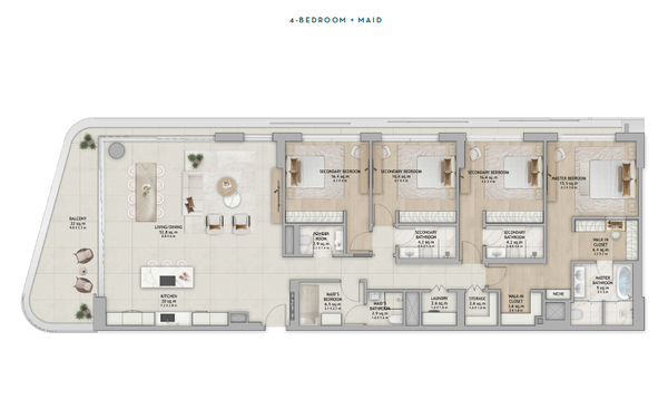 Willkommen in diesem luxuriösen Apartment mit vier Schlafzimmern und einem separaten Zimmer für Ihre Haushälterin oder Haushälter. Dieses exklusive Apartment verfügt über ein eigenes Badezimmer für jede der vier Schlafzimmer, um den Komfort und die Privatsphäre Ihrer Familie oder Ihrer Gäste zu gewährleisten. Mit einer geräumigen und voll ausgestatteten Küche können Sie köstliche Mahlzeiten zubereiten und im eleganten Essbereich genießen. Das Apartment bietet auch eine separate Kammer für Ihre Haushälterin oder Haushälter, um Ihnen bei der täglichen Organisation zu helfen. Perfekt für Familien, die nach einem stilvollen Zuhause suchen, oder Investoren, die nach einer erstklassigen Immobilie mit hochwertigen Ausstattungsmerkmalen suchen. Willkommen in Ihrem neuen Zuhause!
