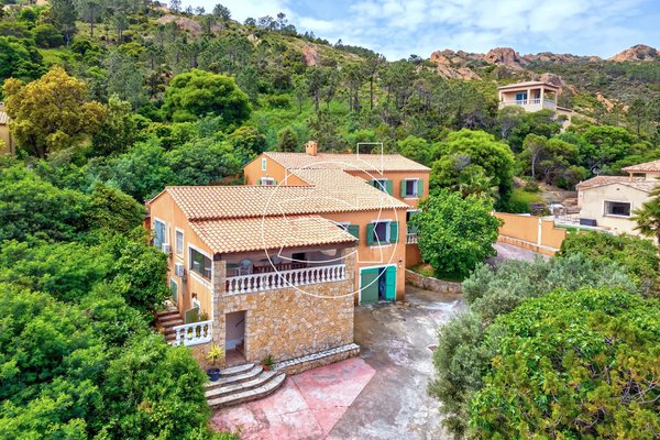 In einer geschützten Umgebung zwischen dem Meer und dem Esterelgebirge gelegen, besteht dieses Haus aus vier unabhängigen 2 bis 4-Zimmer Wohnungen, die sich über zwei Etagen verteilen.