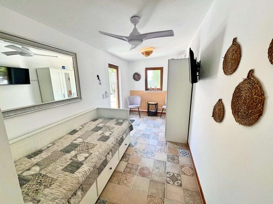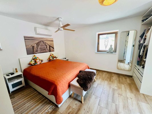 Im Haupthaus findest du ein gemütliches Schlafzimmer, ein helles Wohnzimmer, ein modernes Bad, eine Küche sowie einen praktischen Abstellraum. Das separate Nebengebäude beherbergt neben dem Technikraum auch eine kleine Gästewohnung – ideal für Freunde oder Familie.