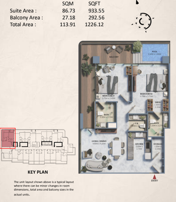 Luxuriöses 2-Zimmer-Apartment mit privatem Pool und modernem Design.