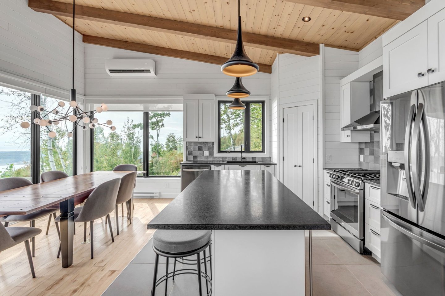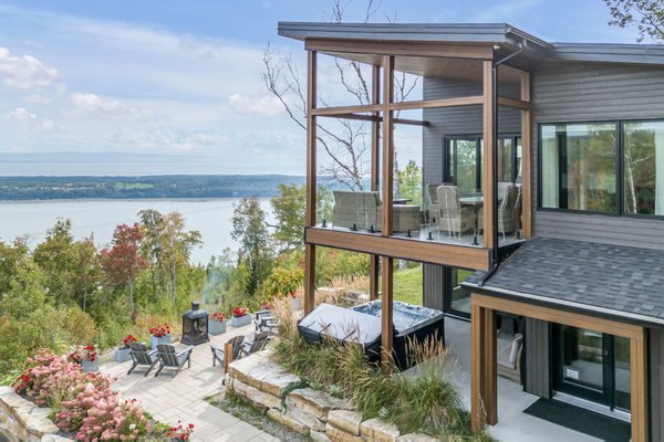 Lassen Sie sich vom unwiderstehlichen Charme dieser modernen Residenz verzaubern, die in eine spektakuläre natürliche Umgebung eingebettet ist und für ihre atemberaubende Aussicht und zahlreiche Outdoor-Aktivitäten bekannt ist. Dieses Anwesen bietet einen atemberaubenden Blick auf den St. Lawrence River und L'Isle-aux-Coudres und verbindet nahtlos Komfort, Luxus und Funktionalität. Es verfügt über 4 Schlafzimmer, eine Hauptsuite mit überdachter Terrasse, einen hellen Wohnbereich, hohe Decken, große Fenster und ein geräumiges Wohnzimmer. Komplett möbliert und ausgestattet verkauft, einschließlich eines Flügels. Kurzfristige Mietgenehmigung und hervorragende Mieteinnahmen bereits etabliert.