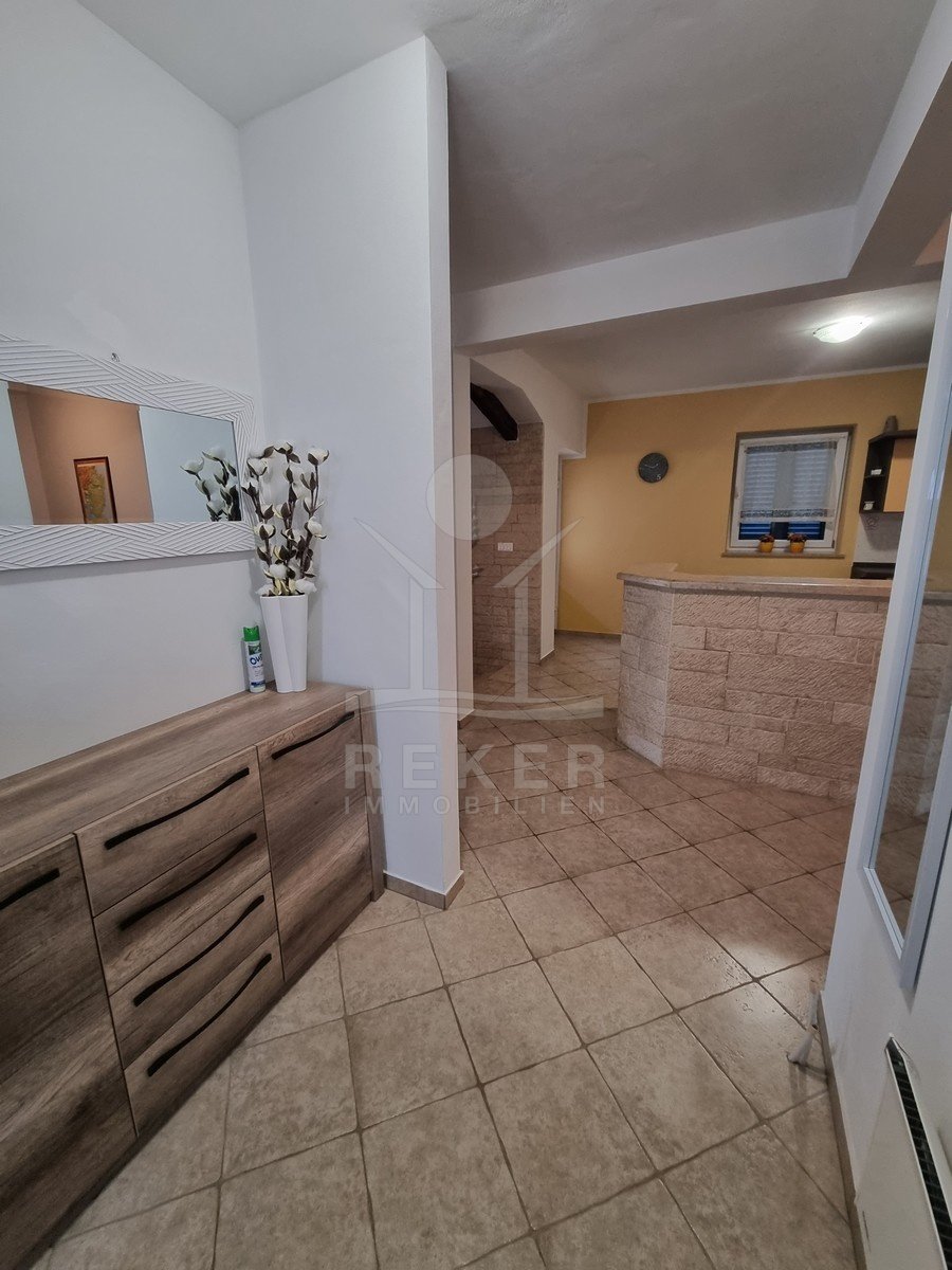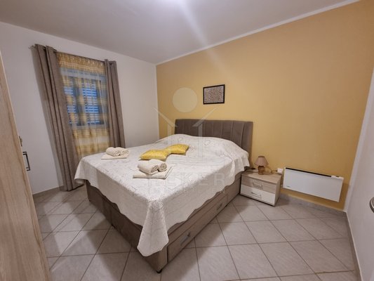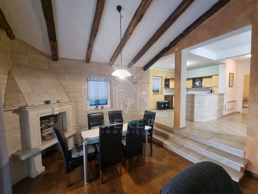 Ein ruhiges Plätzchen in Istrien, nur ein paar Schritte vom Ortszentrum entfernt. Das freistehende Haus liegt in Kaštelir, einer kleinen Gemeinde, etwa 8 km vom Meer. Hier wohnen Sie ruhig, aber nicht abgeschieden. Einkauf, Schule und Bus – alles in