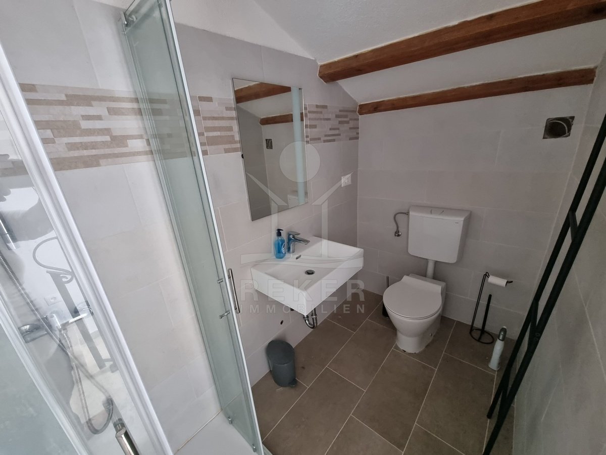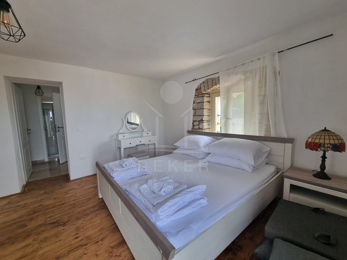 Mitten im alten Ortskern von Tar, nur drei Kilometer vom Meer entfernt, steht diese charmante Doppelhaushälfte im traditionellen Baustil. Alles, was Sie im Alltag brauchen, erreichen Sie bequem zu Fuß: Einkauf, Schule, Bus.