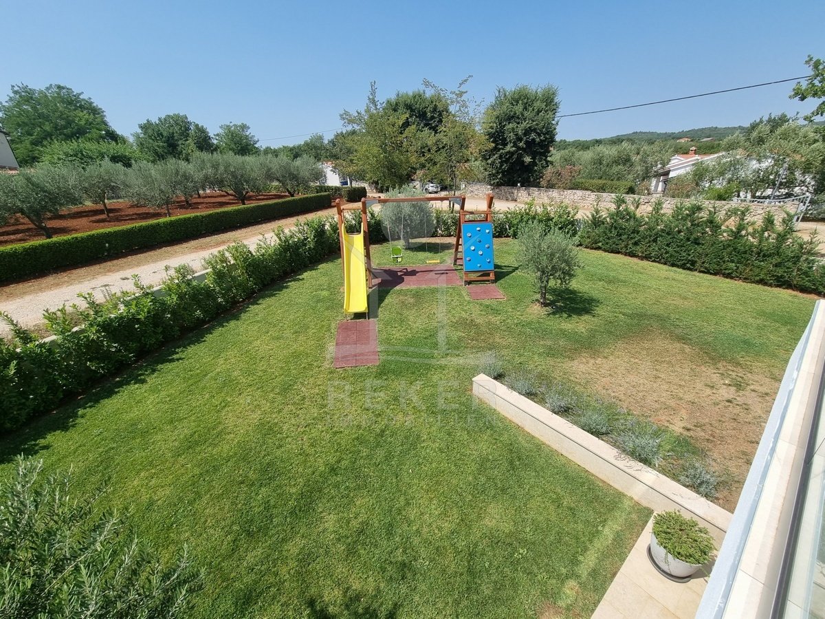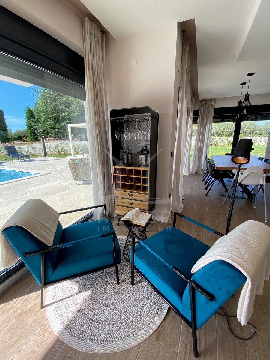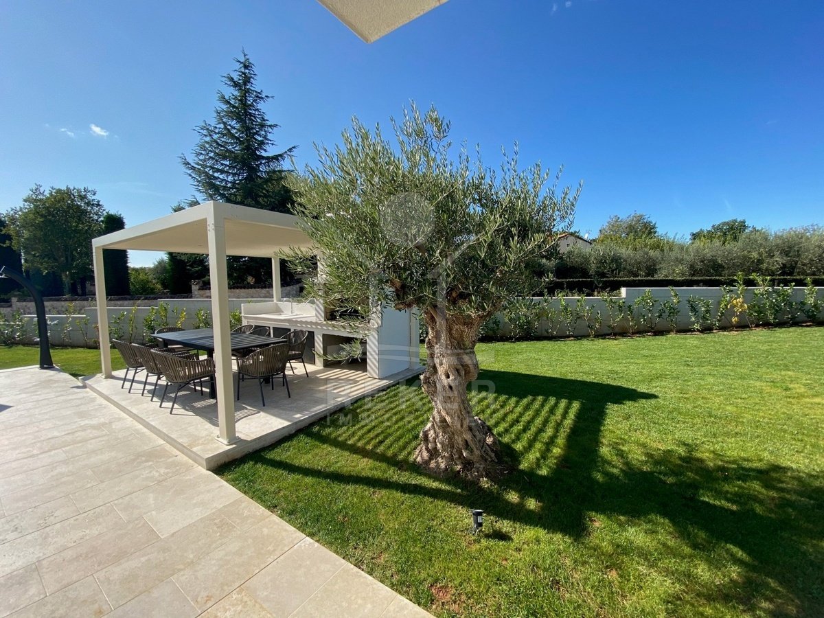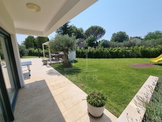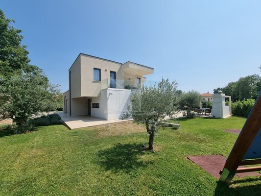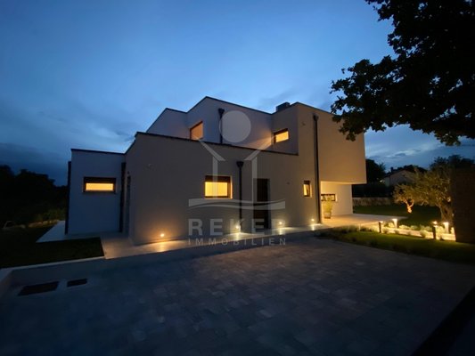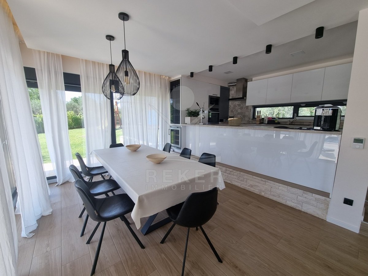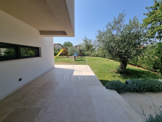 Zwischen Poreč und Višnjan liegt dieses moderne Haus in einer wunderbar ruhigen Umgebung. Hier gibt es kaum Nachbarn, dafür umso mehr Natur. Wiesen, Wälder und viel Grün schaffen ein Gefühl von Freiheit. Wer Rückzug und Entspannung sucht, ist hier