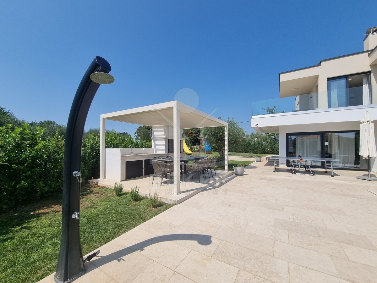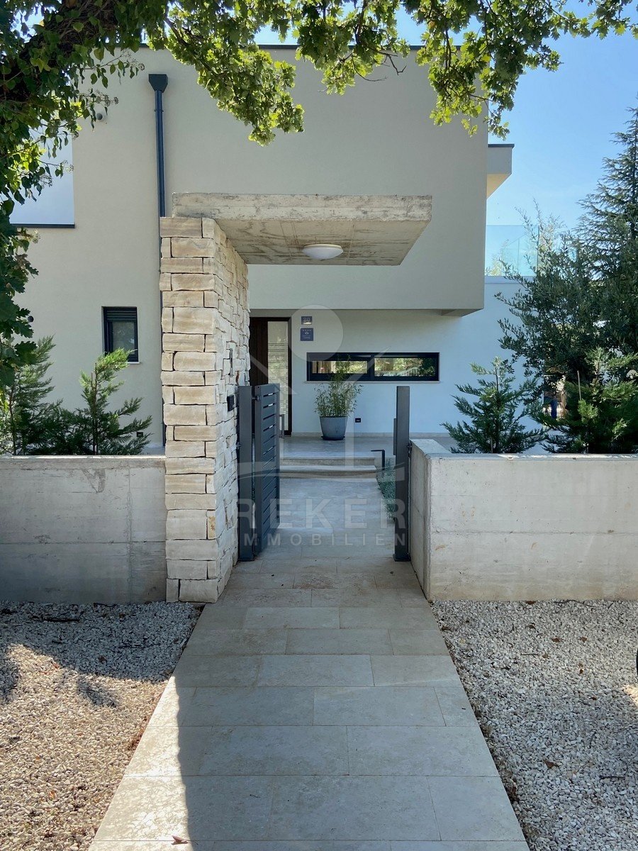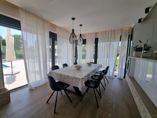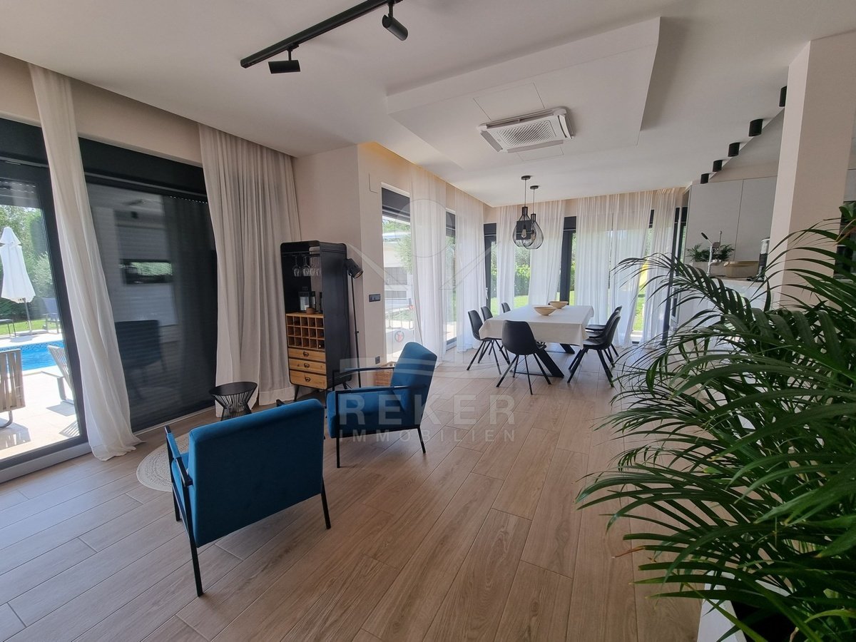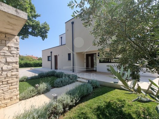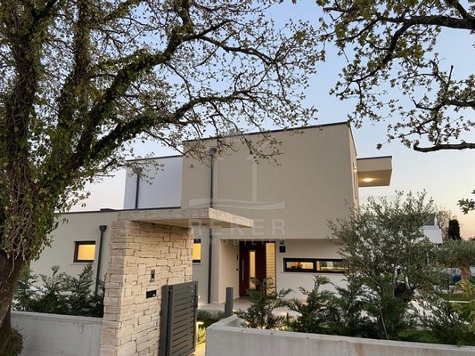 Zwischen Poreč und Višnjan liegt dieses moderne Haus in einer wunderbar ruhigen Umgebung. Hier gibt es kaum Nachbarn, dafür umso mehr Natur. Wiesen, Wälder und viel Grün schaffen ein Gefühl von Freiheit. Wer Rückzug und Entspannung sucht, ist hier