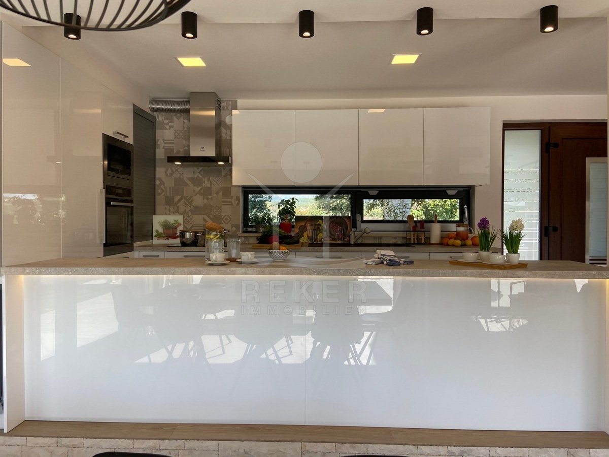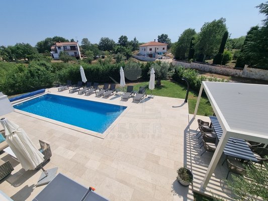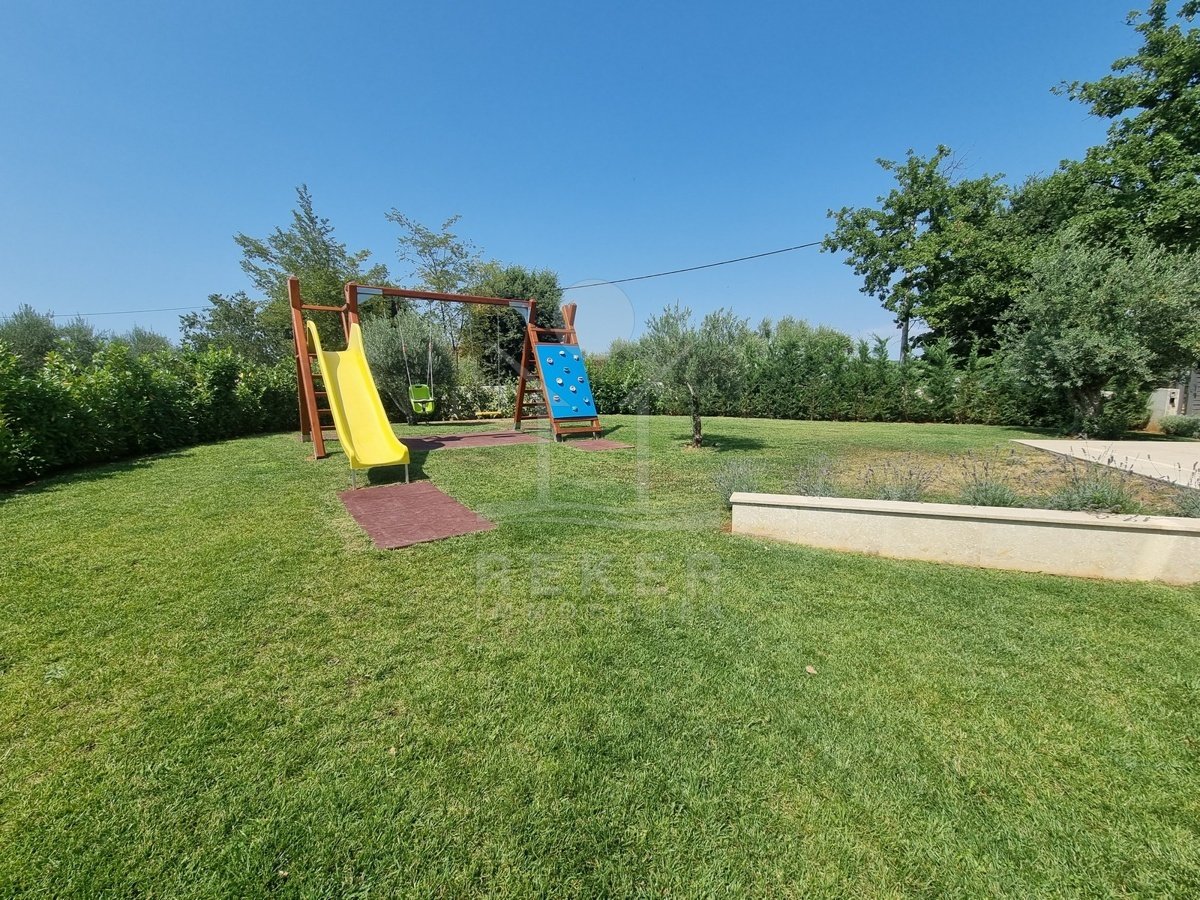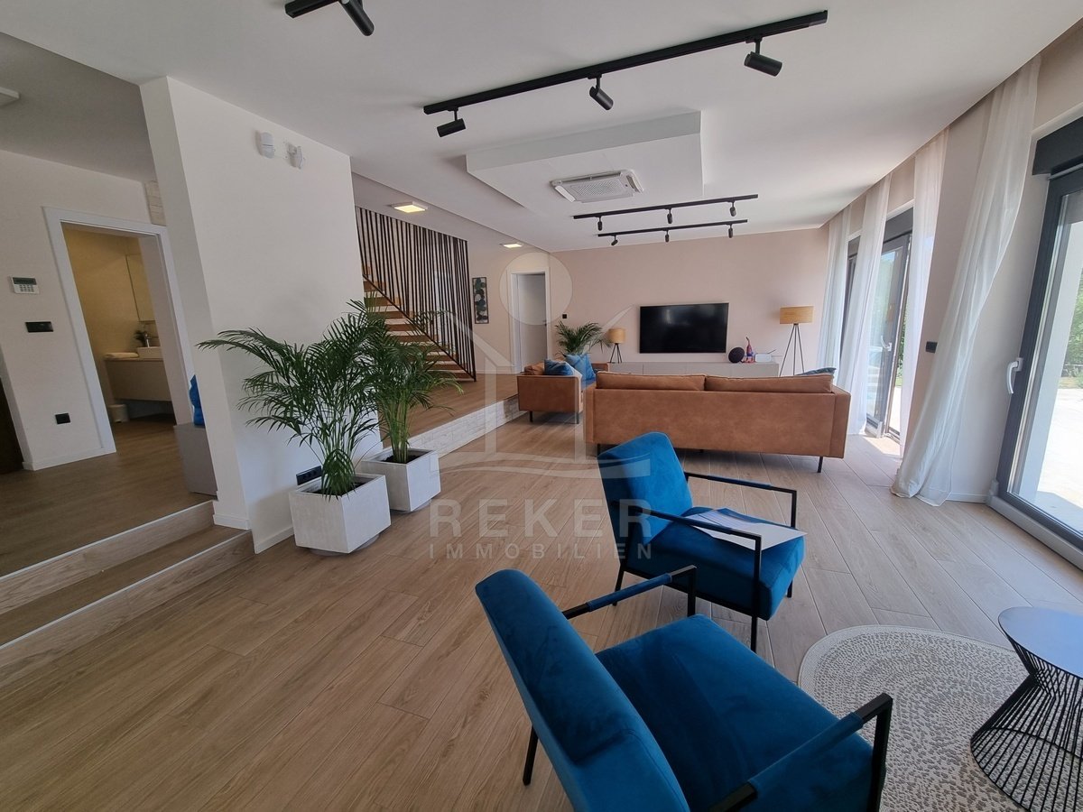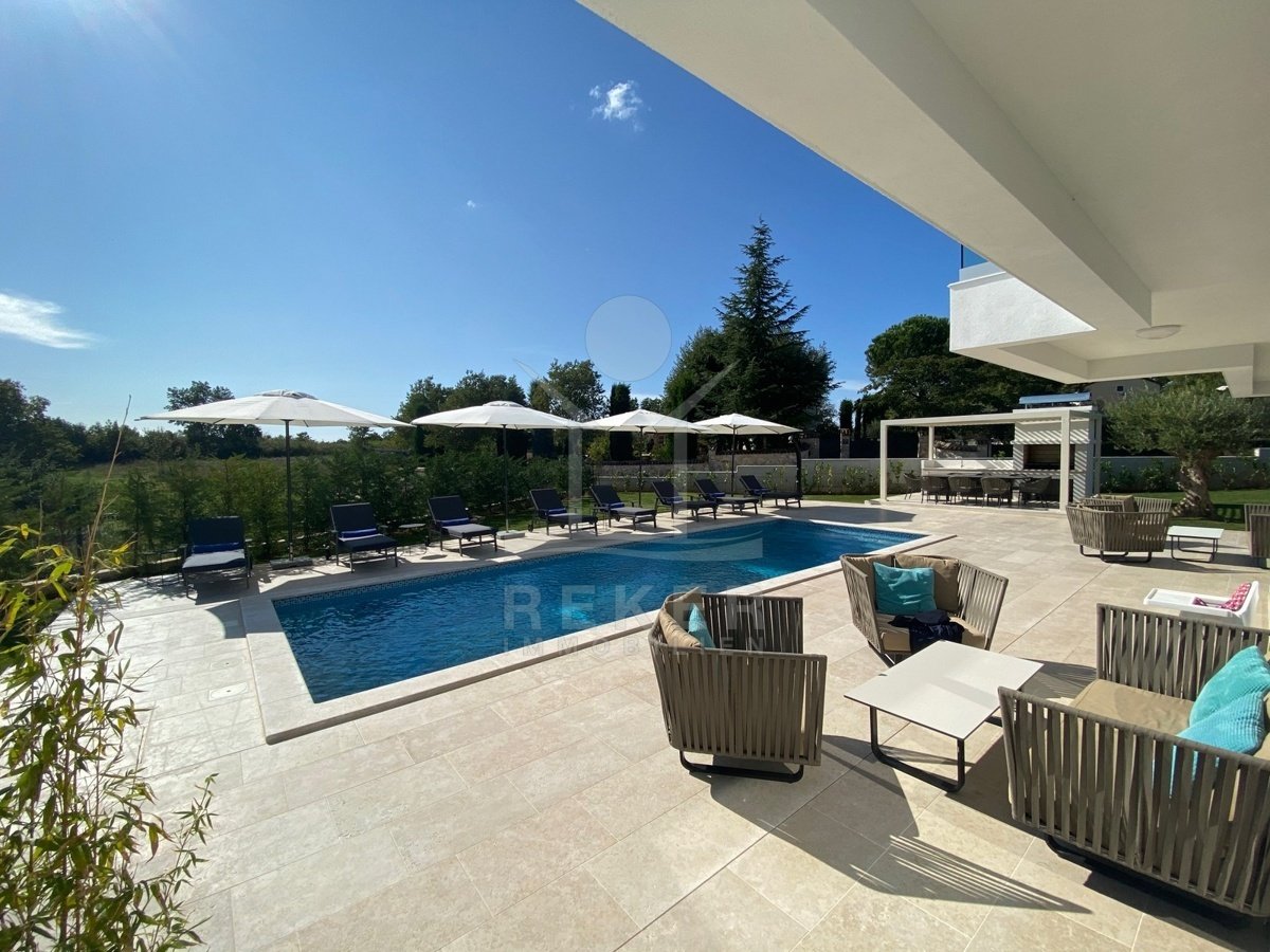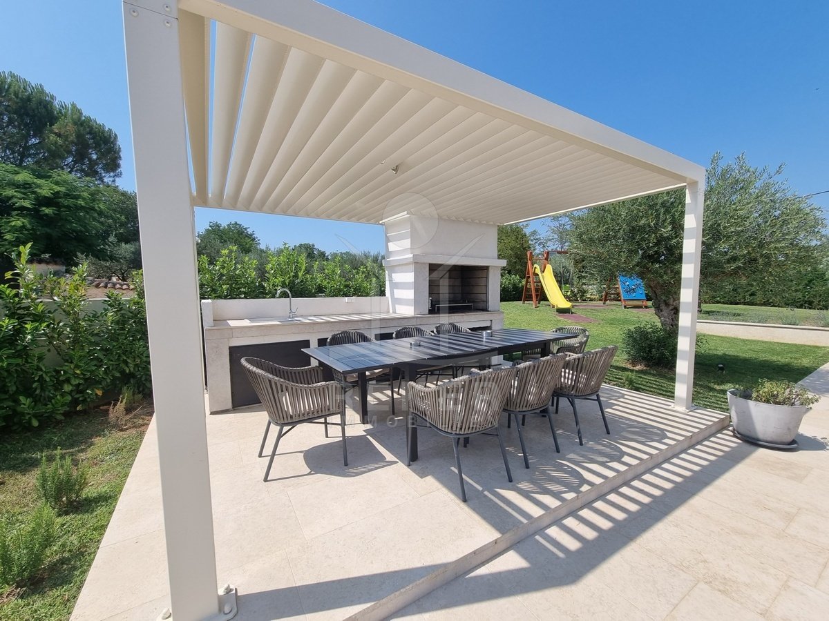 Zwischen Poreč und Višnjan liegt dieses moderne Haus in einer wunderbar ruhigen Umgebung. Hier gibt es kaum Nachbarn, dafür umso mehr Natur. Wiesen, Wälder und viel Grün schaffen ein Gefühl von Freiheit. Wer Rückzug und Entspannung sucht, ist hier