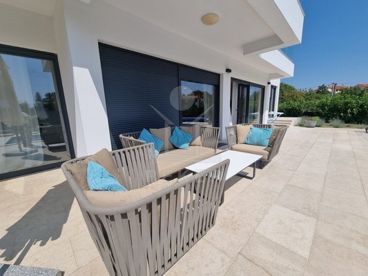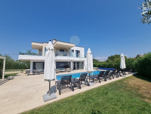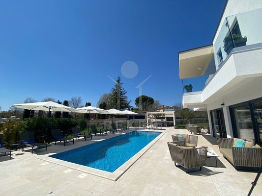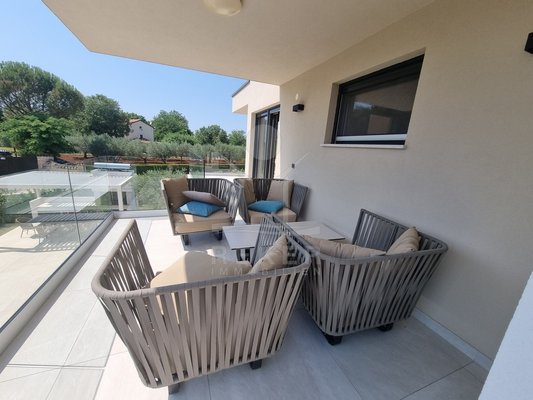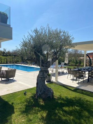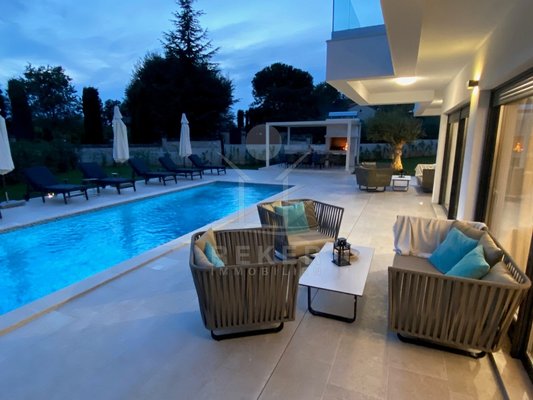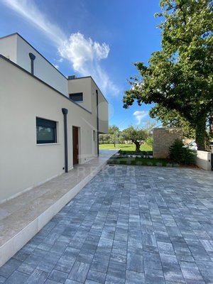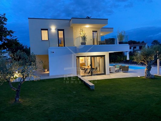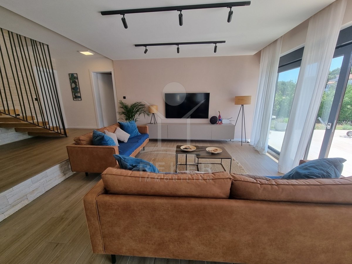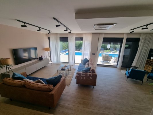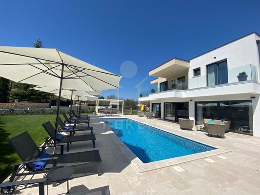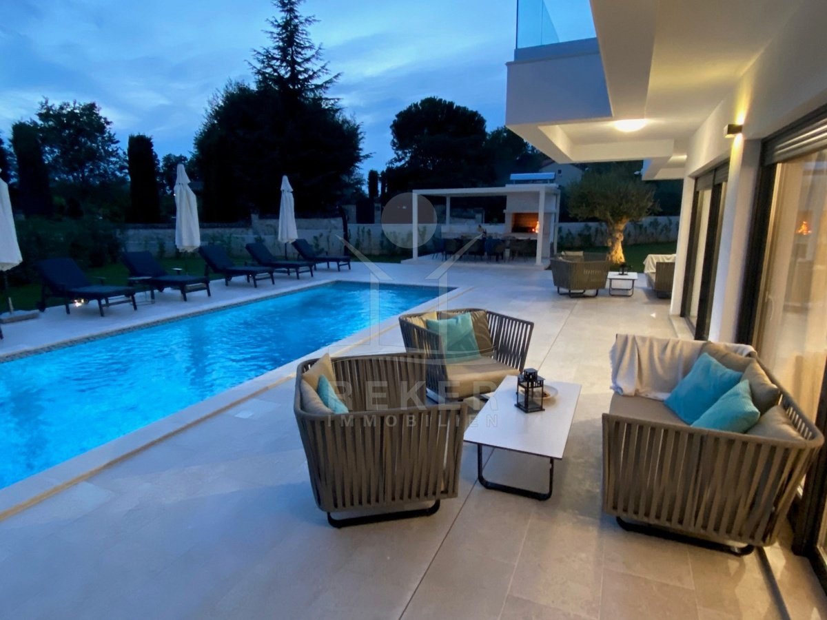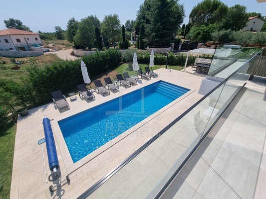 Zwischen Poreč und Višnjan liegt dieses moderne Haus in einer wunderbar ruhigen Umgebung. Hier gibt es kaum Nachbarn, dafür umso mehr Natur. Wiesen, Wälder und viel Grün schaffen ein Gefühl von Freiheit. Wer Rückzug und Entspannung sucht, ist hier
