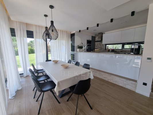 Zwischen Poreč und Višnjan liegt dieses moderne Haus in einer wunderbar ruhigen Umgebung. Hier gibt es kaum Nachbarn, dafür umso mehr Natur. Wiesen, Wälder und viel Grün schaffen ein Gefühl von Freiheit. Wer Rückzug und Entspannung sucht, ist hier genau richtig. Bis zur Küste sind es nur zehn Minuten mit dem Auto – ideal für Tagesausflüge ans Meer. Gleichzeitig ist man weit genug entfernt vom Trubel, um die Ruhe in vollen Zügen zu genießen.