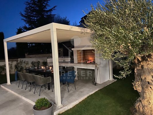 Im Garten wartet alles, was das Herz begehrt: Ein beheizter Pool mit moderner Elektrolyse-Technik, dazu eine große Sonnenterrasse. Die Sommerküche mit Steingrill ist wie gemacht für lange Abende unter freiem Himmel. Für Kinder gibt es einen eigenen Spielbereich. Zwei Balkone bieten zusätzlichen Platz im Freien – mit schönem Blick ins Grüne. Das Grundstück misst über 1.000 m², gepflegt und übersichtlich angelegt. Ideal für Familien, Gäste oder einfach nur zum Abschalten.
