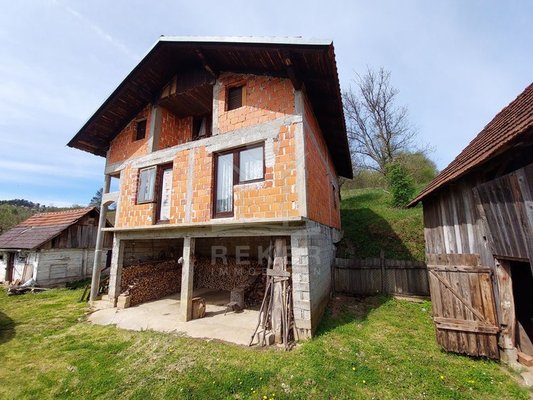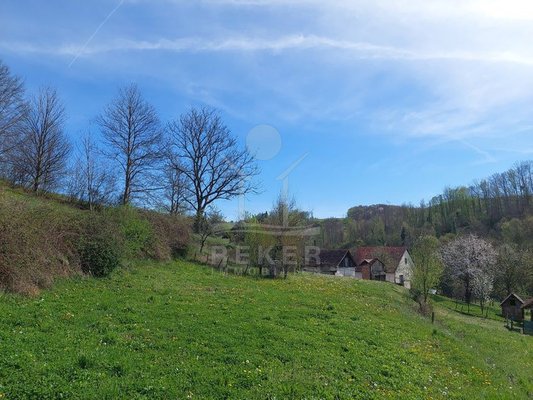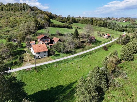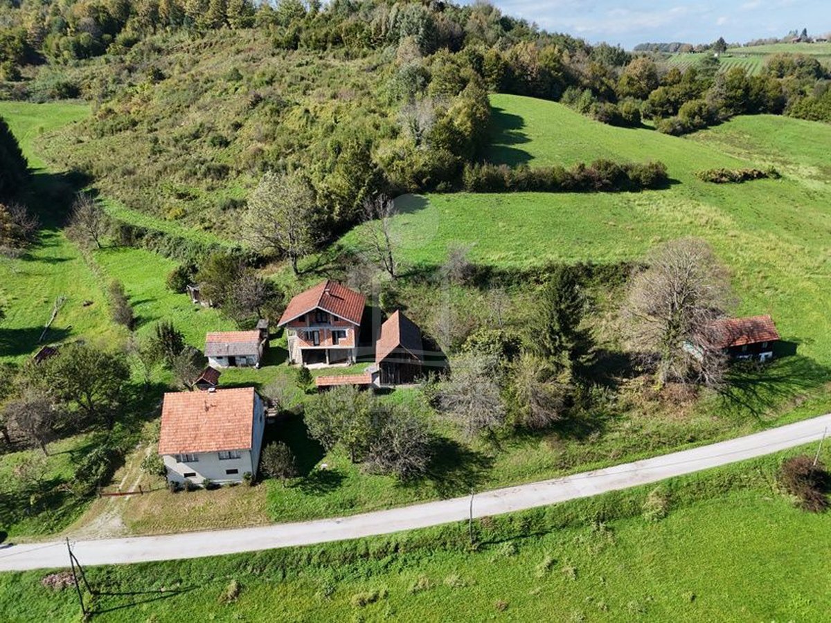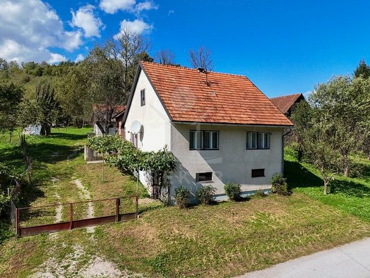 Im kleinen Weiler Mala Crkvina, inmitten der friedlichen Hügellandschaft der Gemeinde Krnjak, liegt dieses Anwesen mit viel Platz und Potenzial. Die ruhige Umgebung, der freie Blick in die Natur und der kleine Bach gegenüber sorgen für eine einmalige