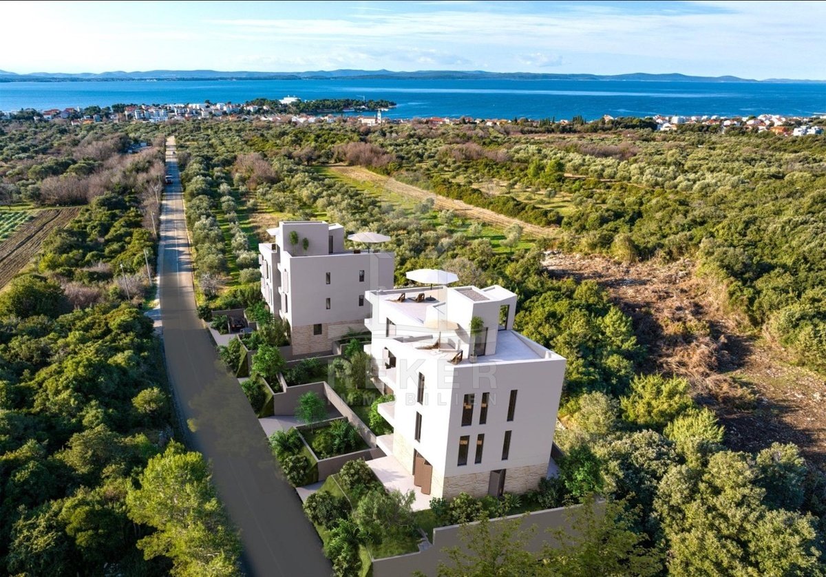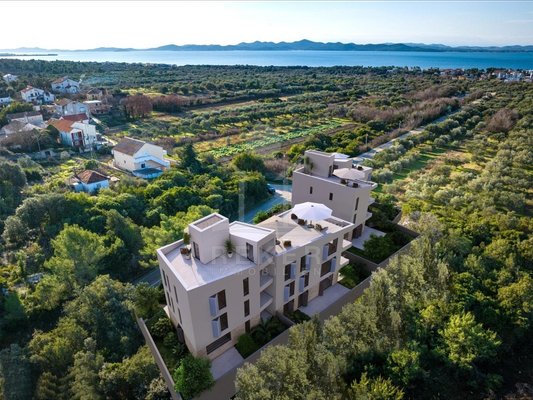 Petrčane liegt in der beliebten Region Dalmatien-Zadar. Ein kleiner Ort mit viel Charme – ruhig, grün, entspannt. Und genau hier entsteht dieses feine Neubauprojekt. Eingebettet in eine idyllische Waldlage. Nur rund 900 Meter trennen Sie vom nächsten Strand. Das Meer ist nah, die Umgebung still. Ideal für alle, die Ruhe schätzen – und Natur.