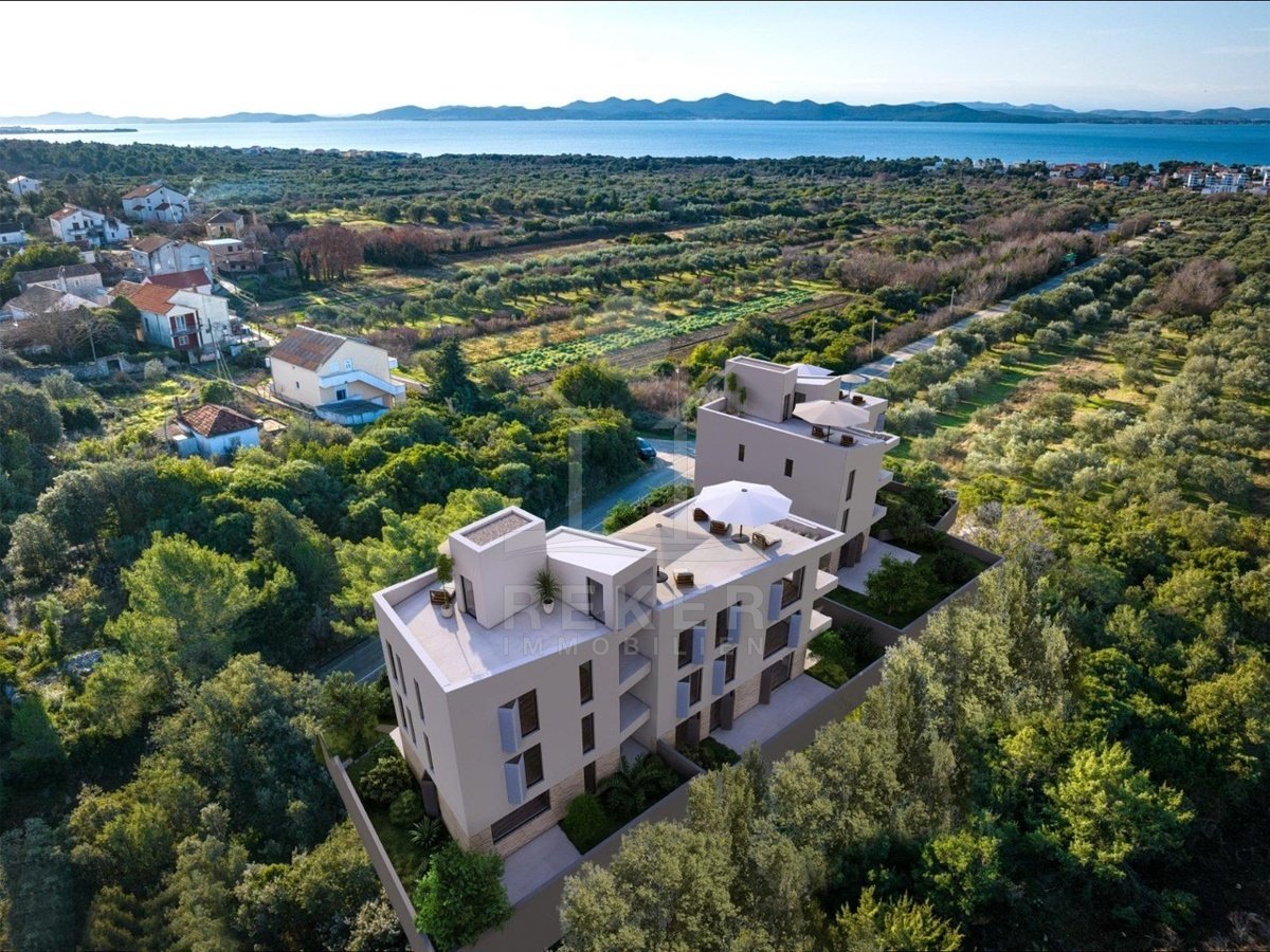 Petrčane liegt in der beliebten Region Dalmatien-Zadar. Ein kleiner Ort mit viel Charme – ruhig, grün, entspannt. Und genau hier entsteht dieses feine Neubauprojekt. Eingebettet in eine idyllische Waldlage. Nur rund 900 Meter trennen Sie vom nächsten