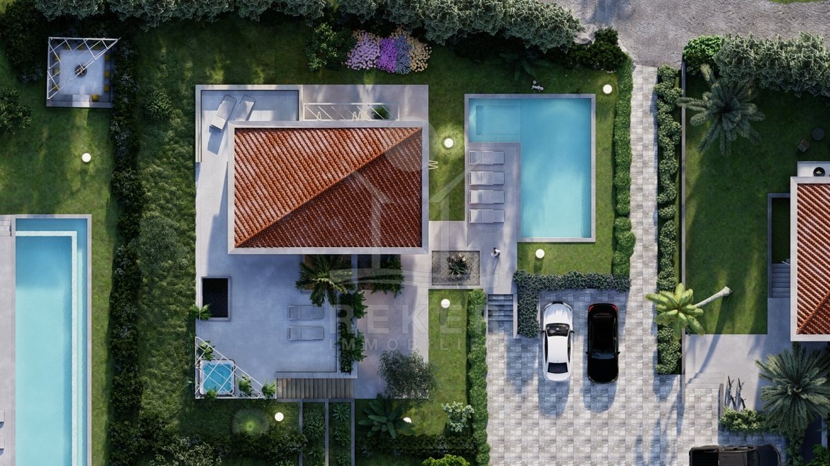 Wer auf der Suche nach einem besonderen Ort ist, wird hier fündig. Diese Villa liegt auf der Insel Krk, ruhig eingebettet in ein exklusives Resort mit nur fünf Häusern – etwa 1.000 Meter vom Meer entfernt. Alles umgeben von viel Grün, gepflegtem Rasen und Ruhe. Im Resort selbst: Tennisplatz, Minigolf, Fitness unter freiem Himmel und ein Spielplatz für Kinder. Ideal für Familien oder auch zur gehobenen Vermietung. Vier private Stellplätze direkt am Haus sorgen für unkompliziertes Ankommen.