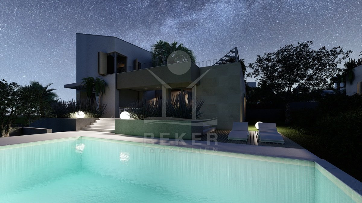 Diese Villa auf der Insel Krk bietet alles, was Familien oder Feriengäste sich wünschen. Ruhig gelegen in einem exklusiven Resort mit nur fünf Häusern, etwa 1.000 Meter vom Meer entfernt. Die Umgebung ist grün, gepflegt, voller Freiraum. Und