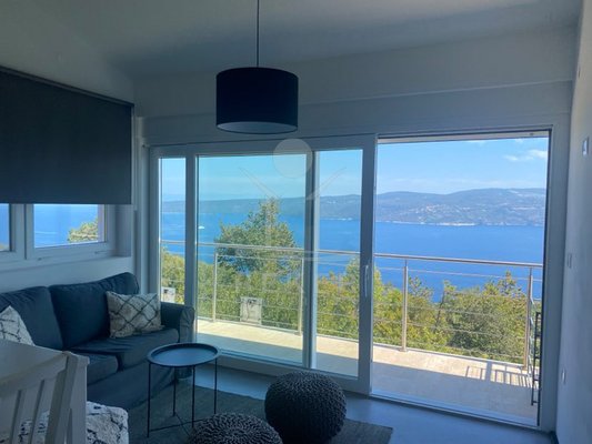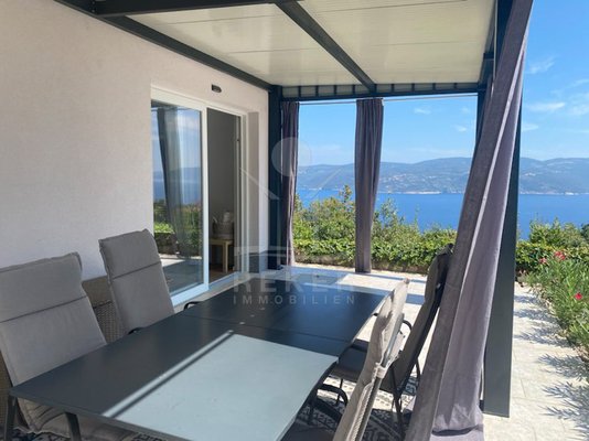 Sie mögen den Blick aufs Meer? Hier bekommen Sie ihn – und zwar als Panorama. Dieses Haus liegt in Istrien, oberhalb von Labin, in herrlicher Hanglage. Drumherum: Wald, Natur, absolute Ruhe. Und doch sind es nur 600 Meter bis zur Küste. Ein