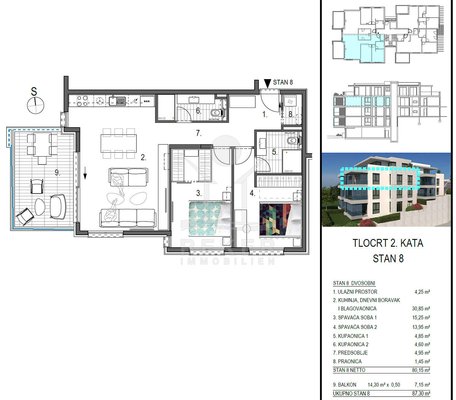 Klare, moderne Architektur: insgesamt entstehen zwölf Wohnungen, verteilt auf vier Etagen – Erdgeschoss bis dritte Stock. Ein Aufzug sorgt für barrierearmen Zugang auf allen Ebenen. Draußen erwartet Sie ein gemeinschaftlicher Pool – ideal für entspannte Stunden unter freiem Himmel. Für jedes Apartment ist ein Stellplatz vorgesehen. Kurz gesagt: alles da, was das Wohnen angenehm macht.