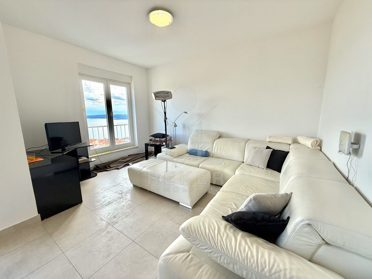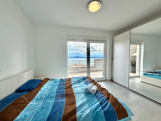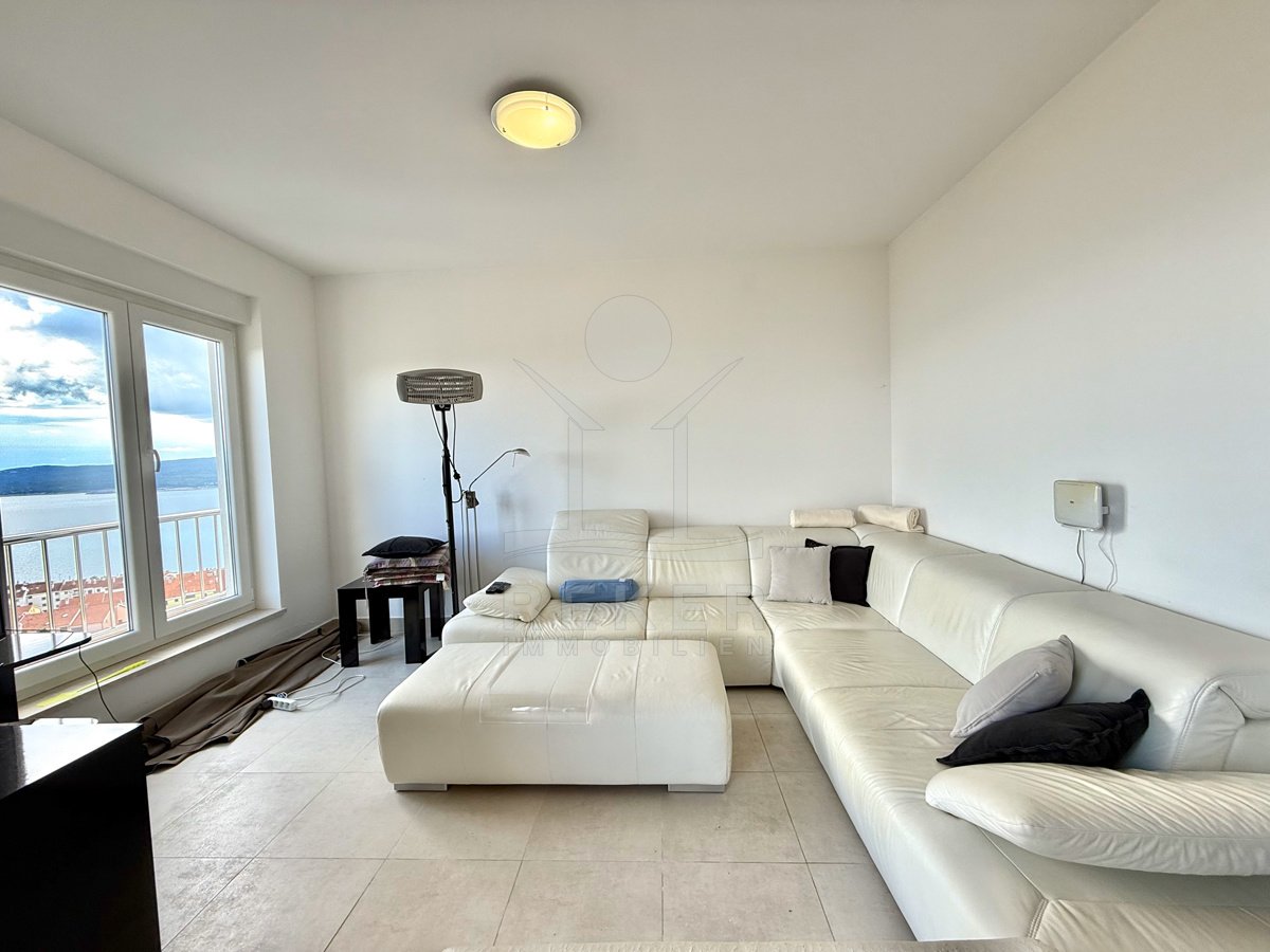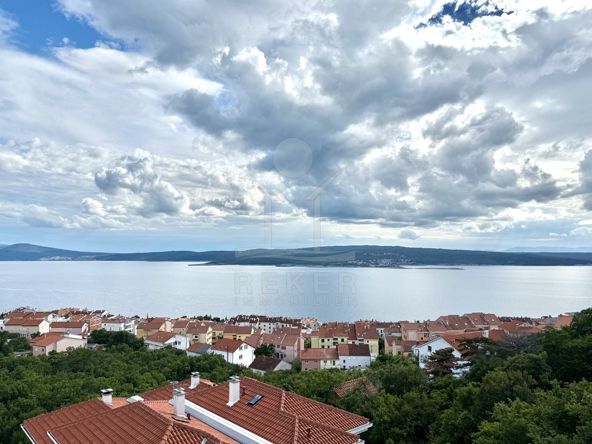 In einem ruhigen Wohngebiet oberhalb von Crikvenica liegt diese helle Wohnung im zweiten Stock – eingebettet in grüne Hänge, mit freiem Blick aufs Meer. Die Hanglage garantiert, dass Ihnen der Panorama-Ausblick auf die Bucht, Crikvenica und die Insel