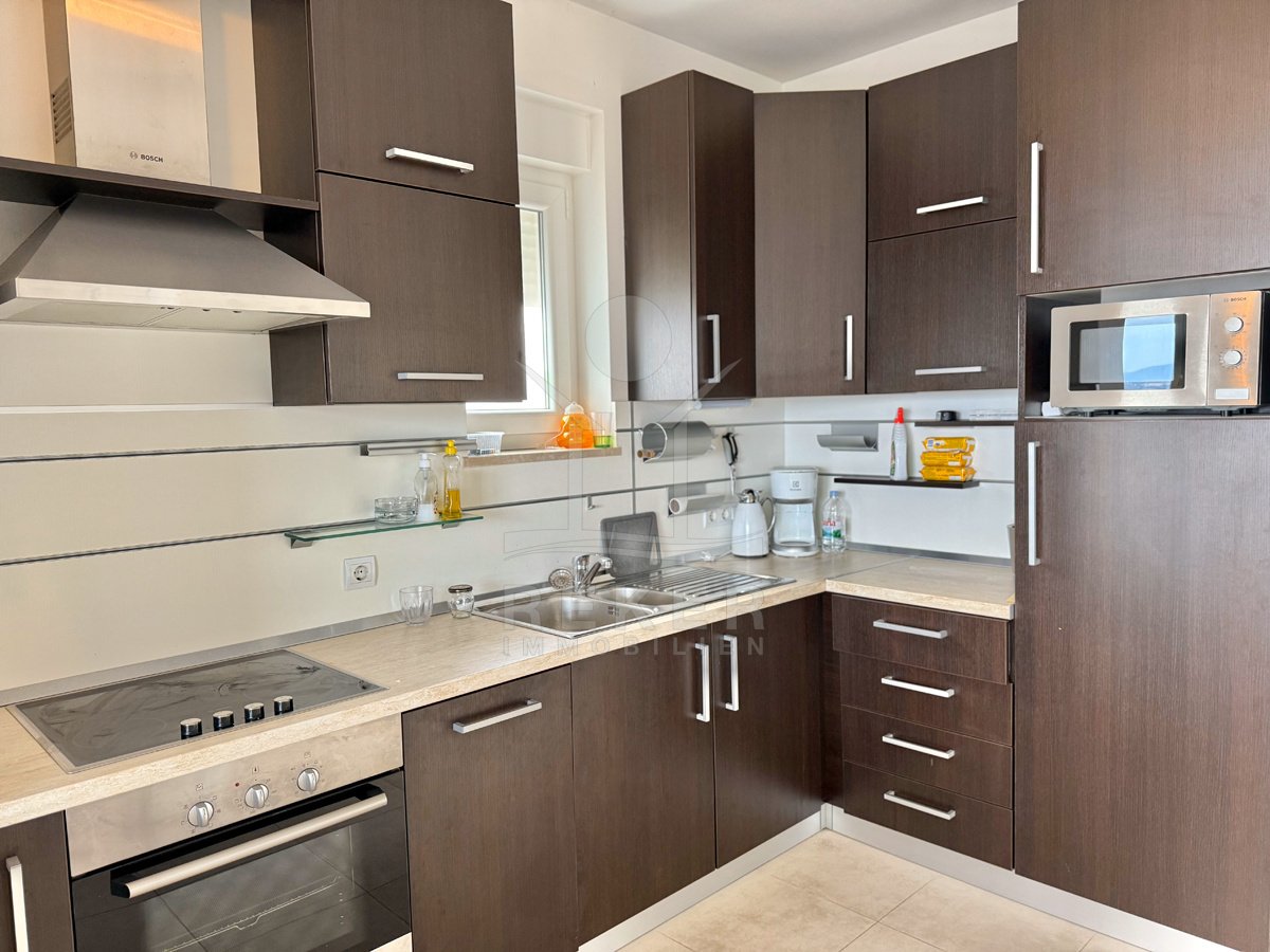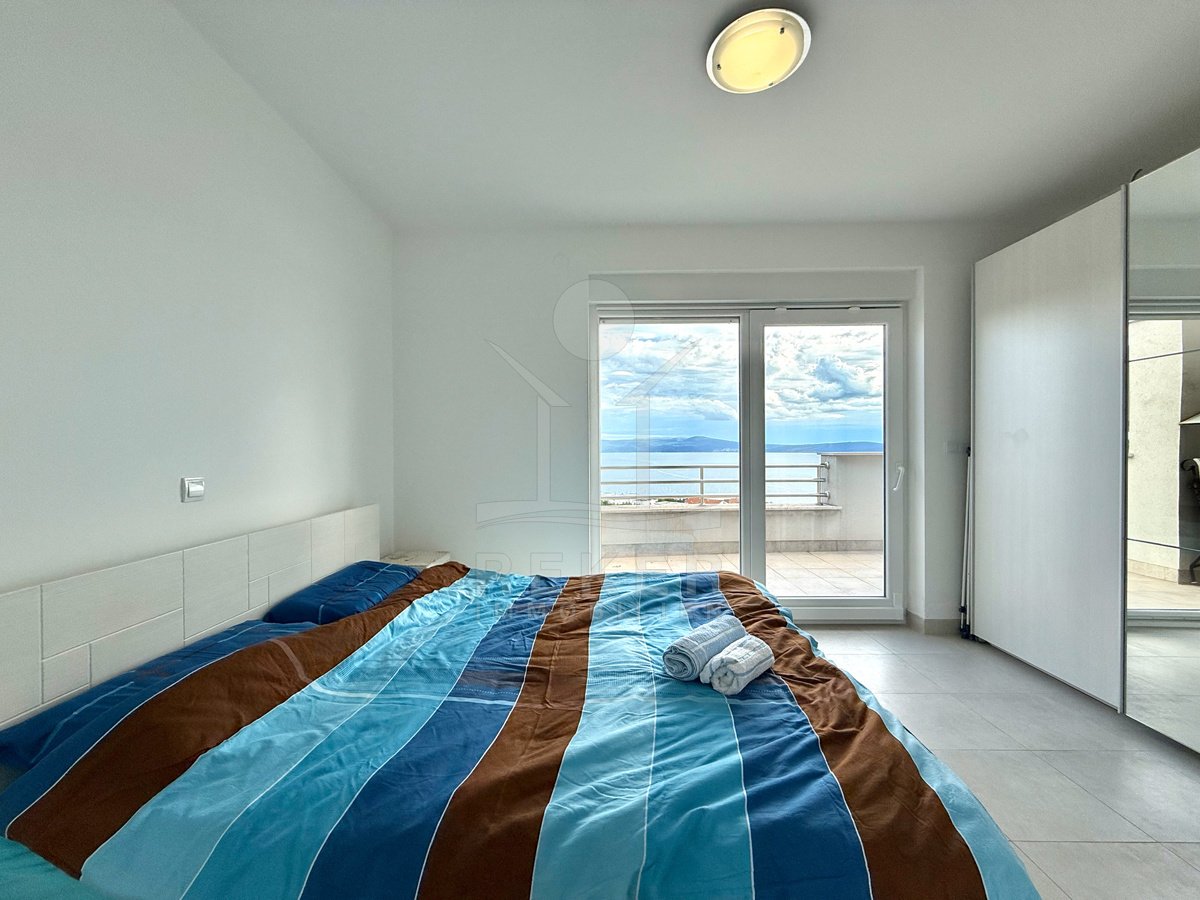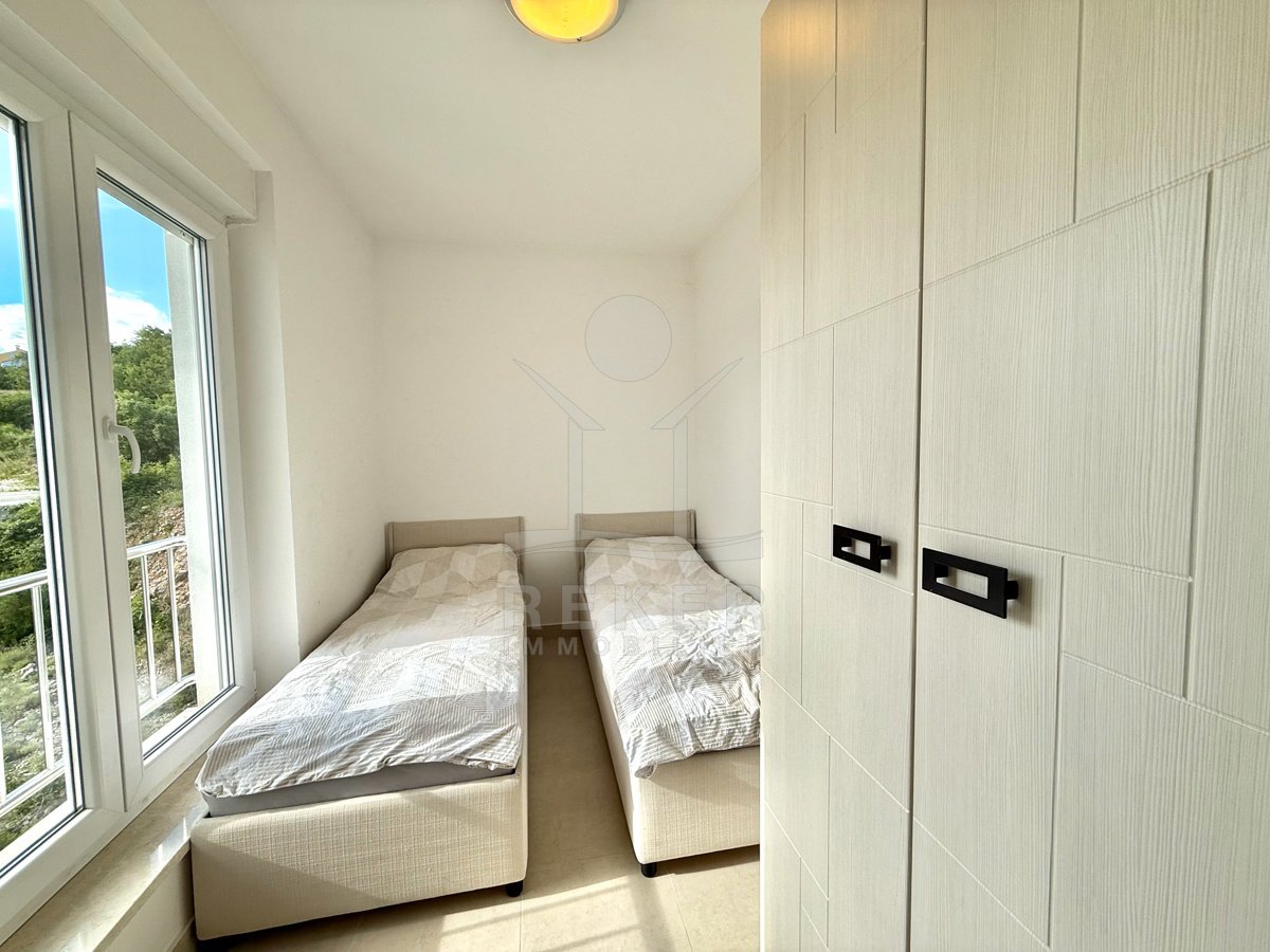 In einem ruhigen Wohngebiet oberhalb von Crikvenica liegt diese helle Wohnung im zweiten Stock – eingebettet in grüne Hänge, mit freiem Blick aufs Meer. Die Hanglage garantiert, dass Ihnen der Panorama-Ausblick auf die Bucht, Crikvenica und die Insel