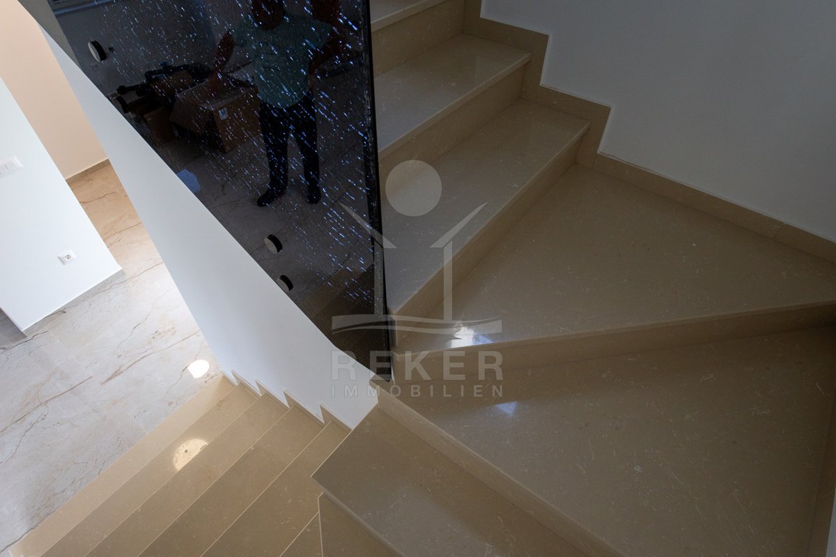 Die Villa liegt eingebettet in eine gepflegte Nachbarschaft mit Villen und Familienhäusern. Nur 300 Meter trennen Sie vom türkisblauen Meer. Ein kurzer Spaziergang und schon stehen Sie am Strand. Der Meerblick ist inklusive. Die Umgebung ist grün, angenehm ruhig und wirkt sofort entspannend. Perfekt für alle, die Privatsphäre schätzen und dennoch Wert auf ein gehobenes Umfeld legen.