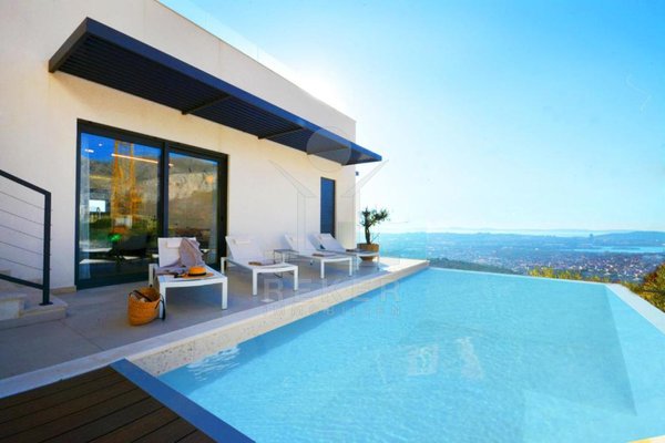 Design trifft Aussicht: Luxusvilla mit Pool und Panoramablick über die Küste