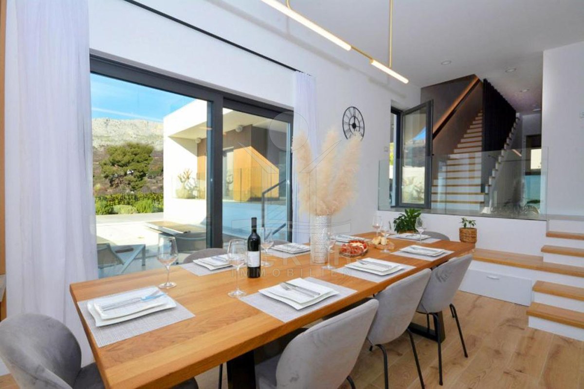 Etwas oberhalb von Split gelegen, verbindet diese Villa Ruhe mit Nähe zur Stadt. Nur rund fünf Kilometer trennen Sie vom Zentrum, doch hier oben genießen Sie Privatsphäre pur. Die Aussicht? Atemberaubend. Der Meerblick ist schön und unverbaubar. Ringsum grüne Natur. Und doch alles in Reichweite: Ideal für Familien oder als Luxus-Feriendomizil zur Vermietung.