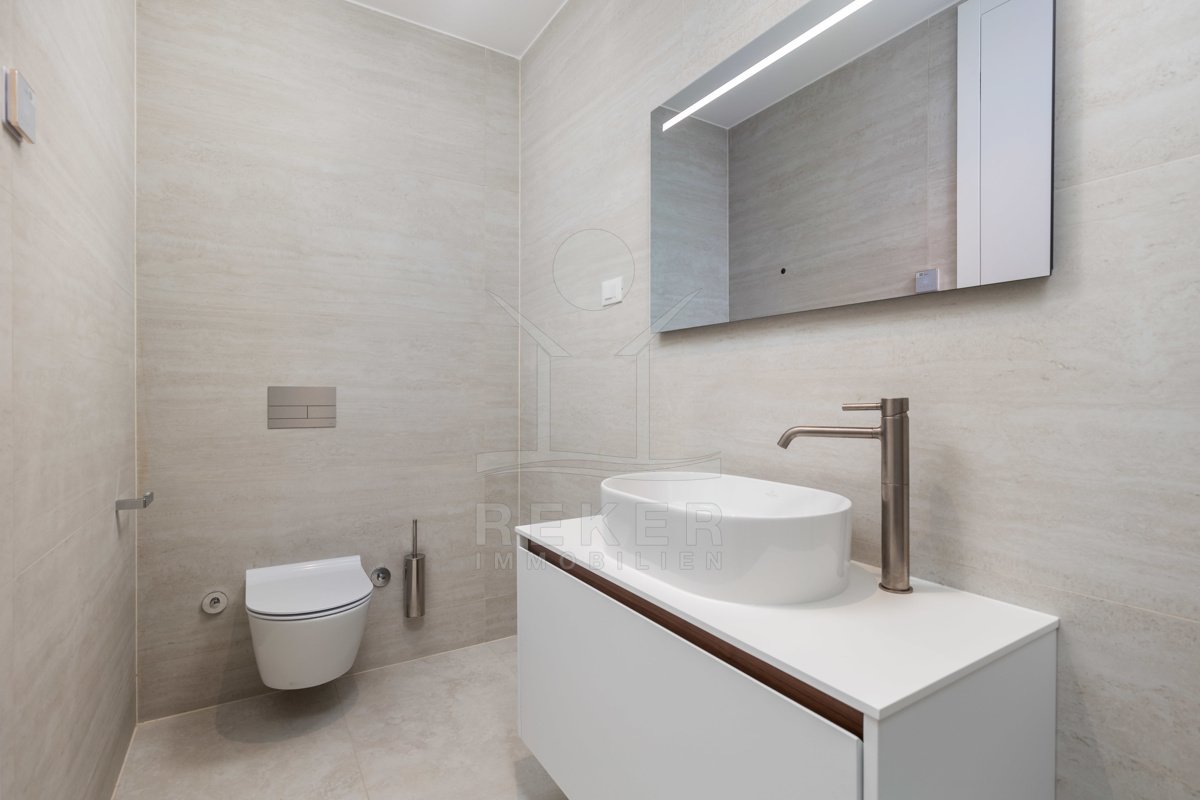 Im Gebäude befinden sich sieben exklusive Wohnungen. Jede ist modern geschnitten und hochwertig ausgestattet. Ein Aufzug sorgt für bequemen Zugang zu allen Etagen. Im Außenbereich wartet ein Gemeinschaftspool mit gepflegter Liegewiese. Die Tiefgarage bietet sichere Stellplätze.