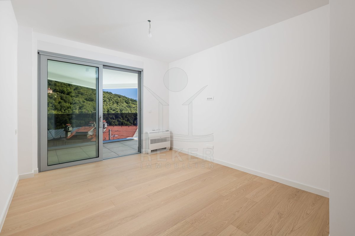 Die Wohnanlage liegt ruhig am Waldrand. Erhöht, mit freiem Blick aufs Meer und das Zentrum von Opatija. Sie erreichen alles bequem zu Fuß – vom gepflegten Stadtpark über charmante Boutiquen bis zu den Stränden der Adria. Trotz der Nähe zum Geschehen ist es angenehm ruhig. Kein Durchgangsverkehr, kein Lärm. Nur dieser unverbaubare Ausblick und die Ruhe der Natur. Perfekt für alle, die Komfort schätzen, aber auf Privatsphäre nicht verzichten wollen ... viel Grün, angenehme Ruhe und dieser besondere Blick auf die Adria.
