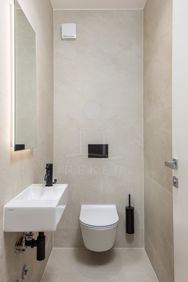 Im Gebäude befinden sich sieben exklusive Wohnungen. Jede ist modern geschnitten und hochwertig ausgestattet. Ein Aufzug sorgt für bequemen Zugang zu allen Etagen. Im Außenbereich wartet ein Gemeinschaftspool mit gepflegter Liegewiese. Die Tiefgarage bietet sichere Stellplätze.