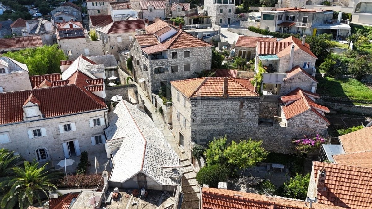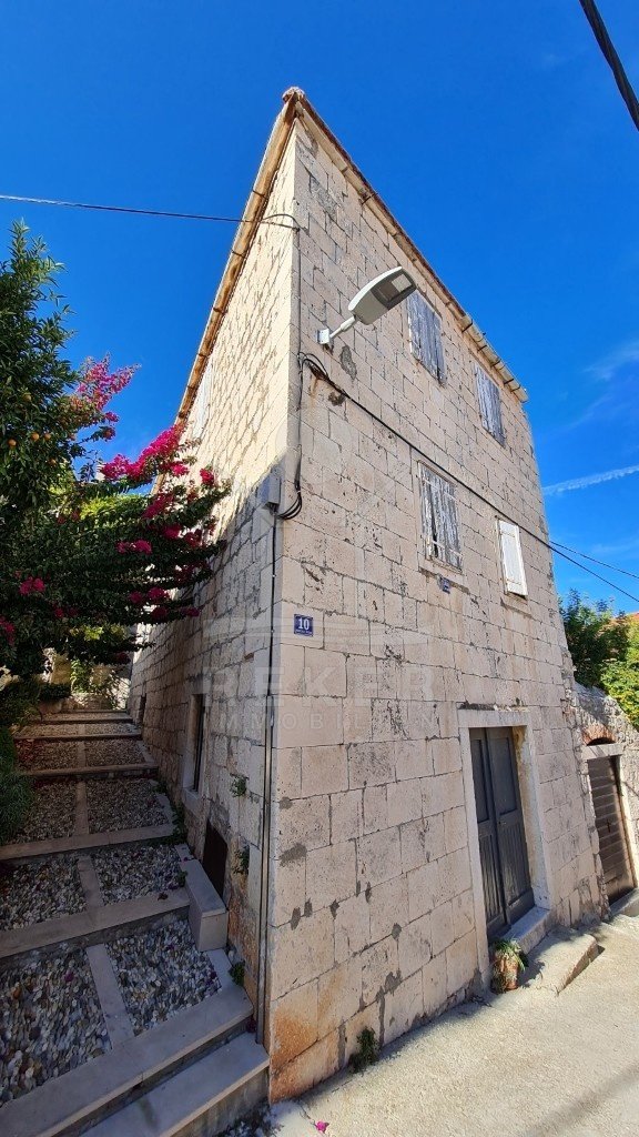 Mitten im alten Ortskern auf Brač steht dieses authentische Steinhaus – keine 40 Meter vom Meer entfernt. Die ruhige Gasse ist charmant verwinkelt, typisch für die dalmatinische Küstenarchitektur. Das Haus liegt leicht erhöht, Sie genießen von den
