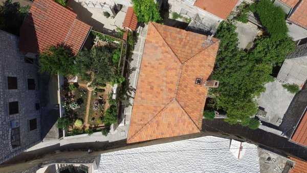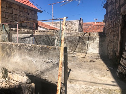 Der Außenbereich zeigt Charakter: Das Natursteinmauerwerk aus originalem Brač-Stein prägt das gesamte Erscheinungsbild. Vor dem Eingang im ersten Stock liegt eine kleine Terrasse – ein ruhiger Platz mit Blick in die engen Gassen. Im Erdgeschoss erwartet Sie eine traditionelle Taverne mit rustikaler Atmosphäre. Der kleine Garten auf der Rückseite bietet Raum für Kräuter, eine Bank im Schatten oder einfach Ruhe.