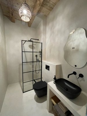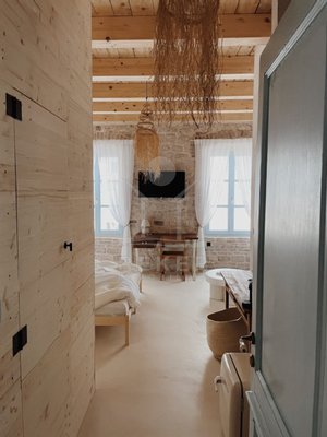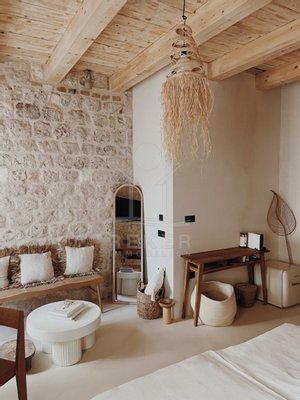 Hier trifft meditative Schlichtheit auf historische Stärke. Die sanfte Farbwelt, kombiniert mit echter Substanz, schafft genau diesen stillen Luxus, den viele nur aus Bildbänden kennen.