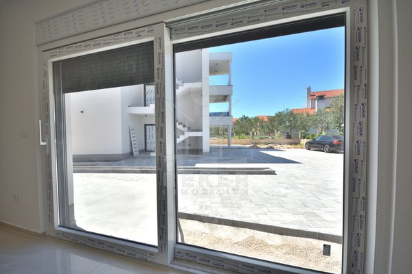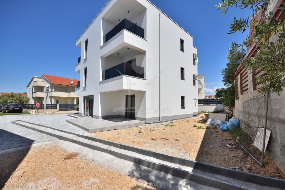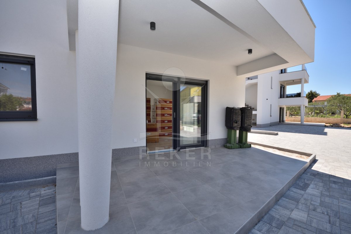 Vodice liegt direkt an der Küste, in einer beliebten, aber nicht überlaufenen Region. Die Wohngegend dieses Neubauprojekts ist ruhig und entspannt, kein Durchgangsverkehr, wenig Lärm. Der Strand ist nur rund 600 Meter entfernt, also bequem zu Fuß