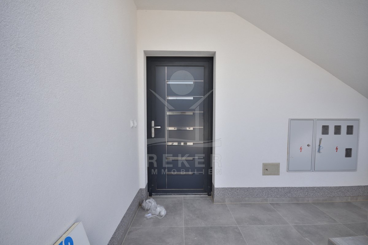Vodice liegt direkt an der Küste, in einer beliebten, aber nicht überlaufenen Region. Die Wohngegend dieses Neubauprojekts ist ruhig und entspannt, kein Durchgangsverkehr, wenig Lärm. Der Strand ist nur rund 600 Meter entfernt, also bequem zu Fuß erreichbar. Auch das Ortszentrum mit Geschäften und Infrastruktur liegt in Gehweite, etwa 800 Meter. Die Nachbarschaft besteht überwiegend aus gepflegten Wohnhäusern mit Gärten und mediterranem Flair.